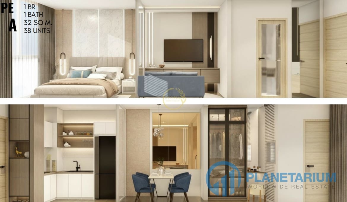 - Appartements 1 chambre : Unités spacieuses d’une superficie de 32 m².