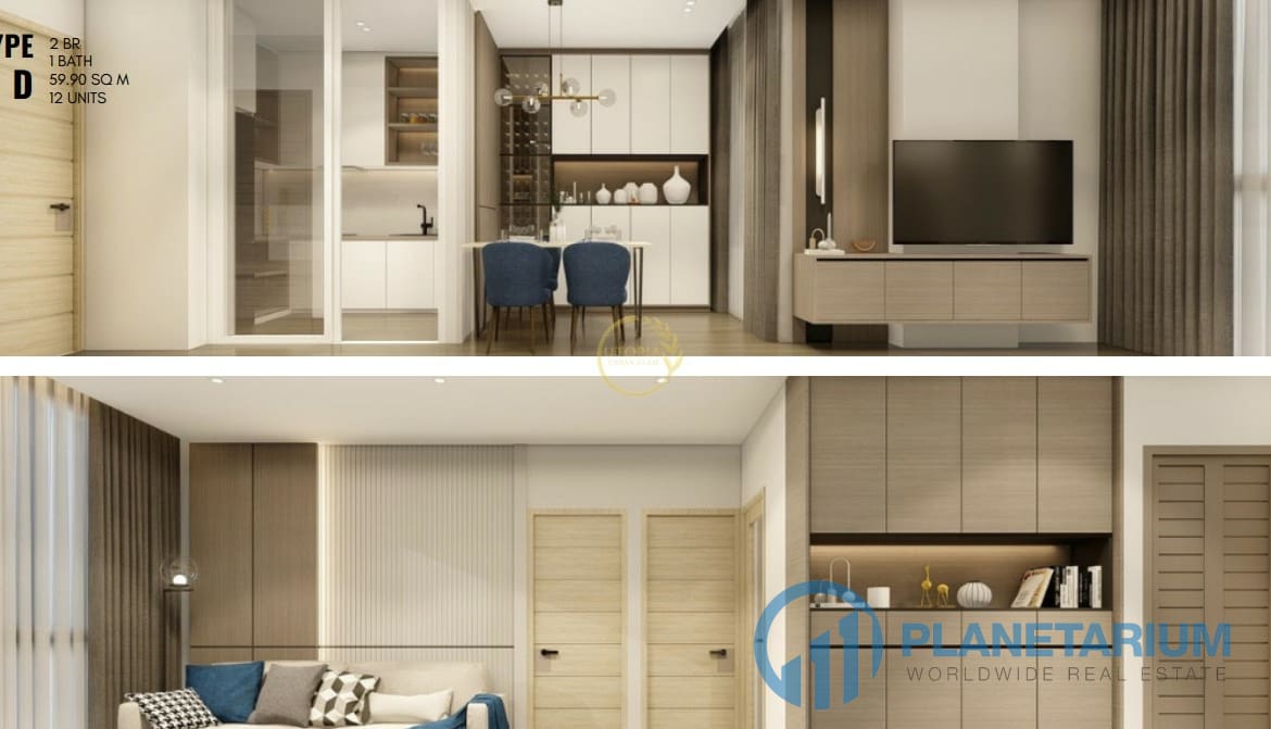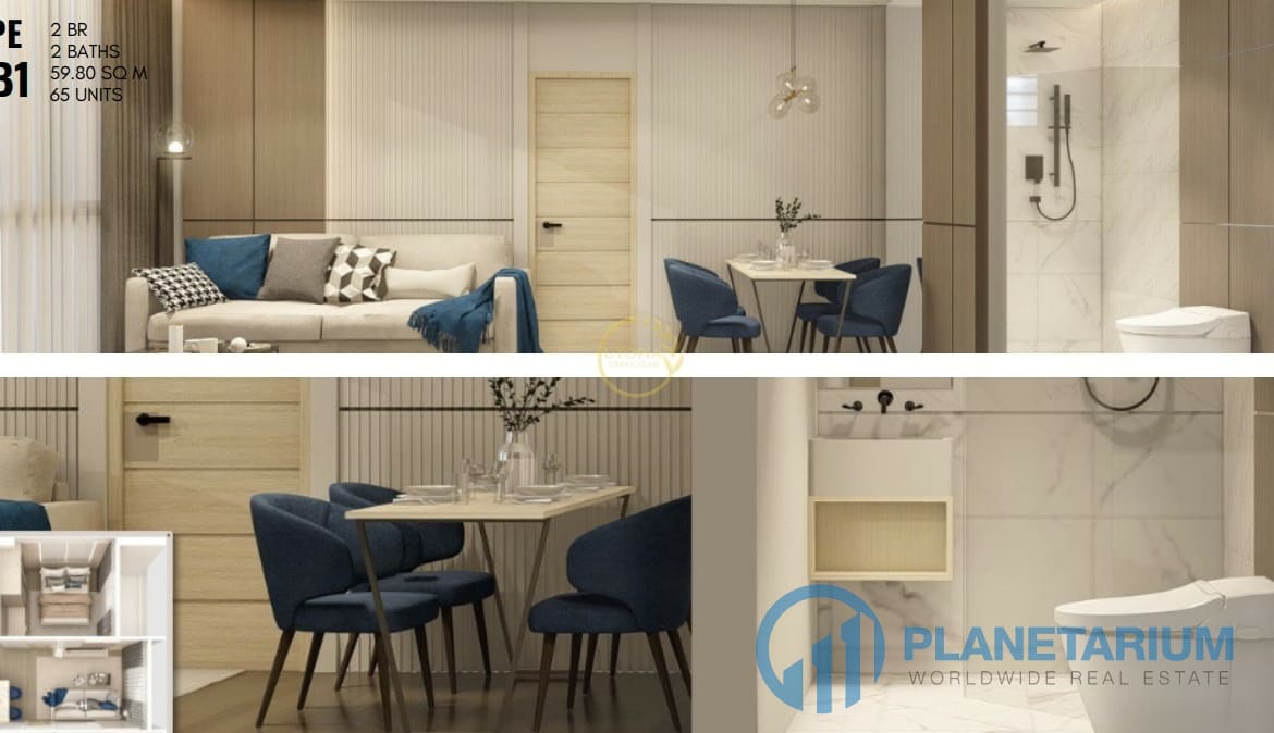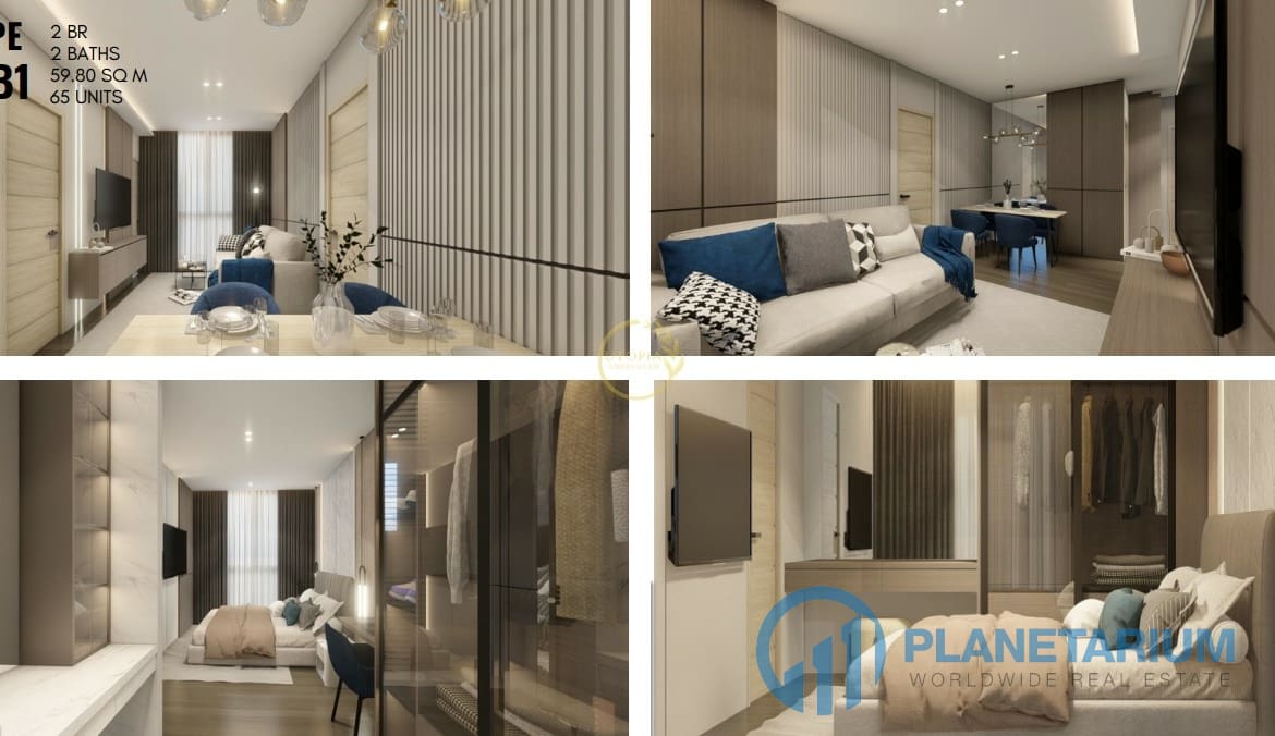 - Appartements 2 chambres : Unités plus grandes à partir de 59,43 m².