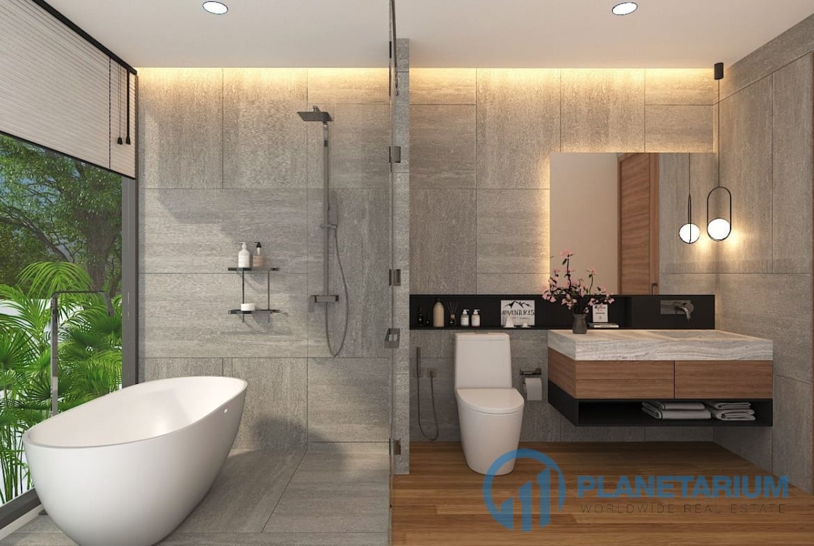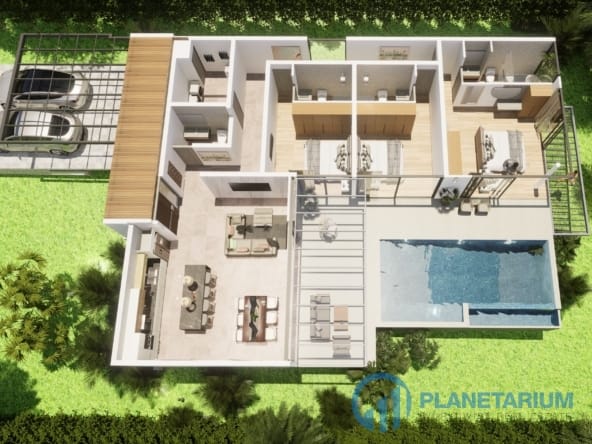 La villa est conçue pour donner une sensation tropicale chaleureuse et une apparence fraîche et étonnante à un mode de vie moderne dans le nouveau quartier chaud de la Thaïlande. À seulement une courte distance en voiture de Phuket (30 minutes de l’aéroport de Phuket), 10 minutes de l’aéroport de Phang Nga (prochainement), 15 minutes d’une destination attrayante “Samet nangchi”, de la plage de Natai, du Baba Beach Club, des sources thermales naturelles et du nouveau point de repère thaïlandais