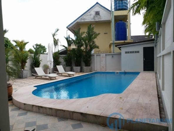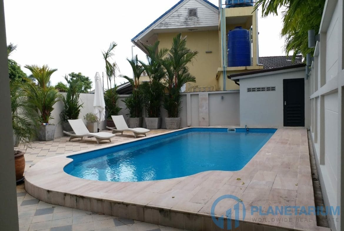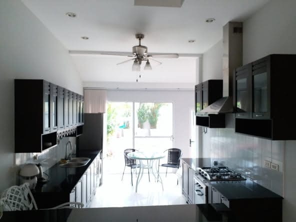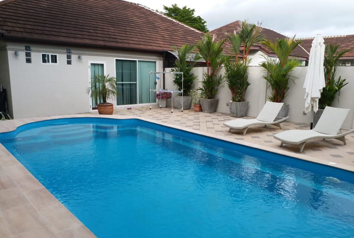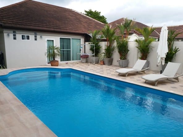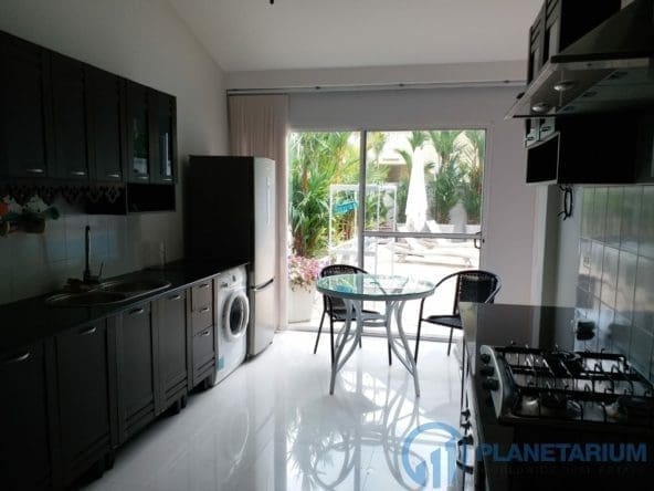 Maison avec 2 chambres à coucher, 2 salles de bains, piscine, taille 3×8, eau saline avec mobilier.