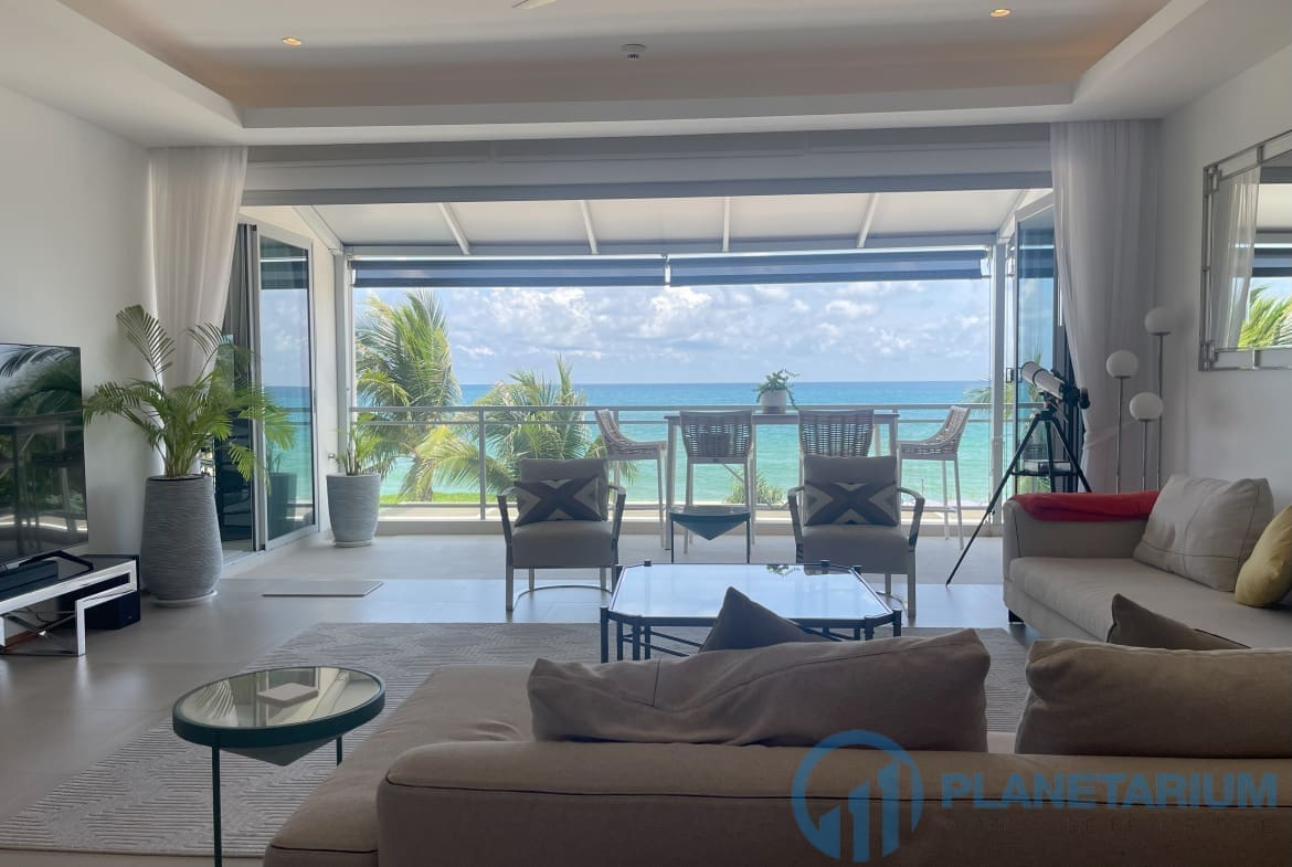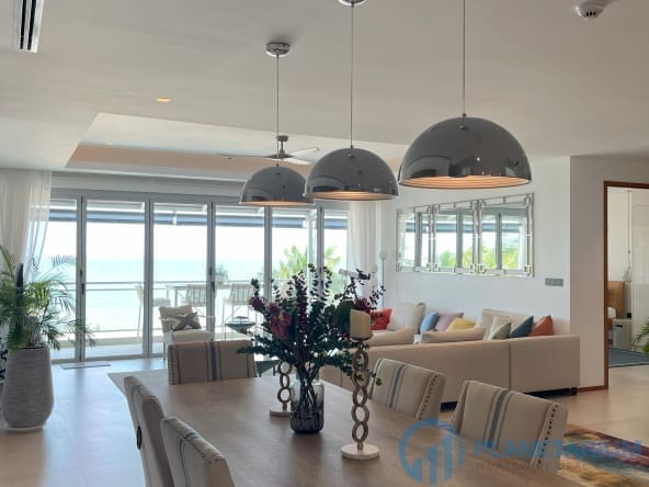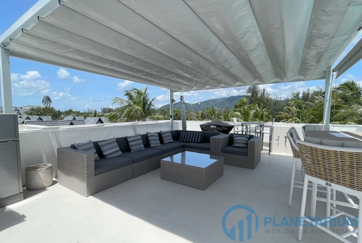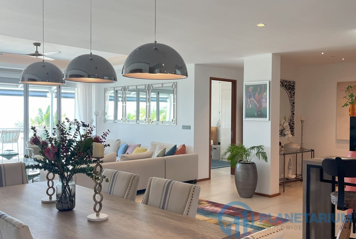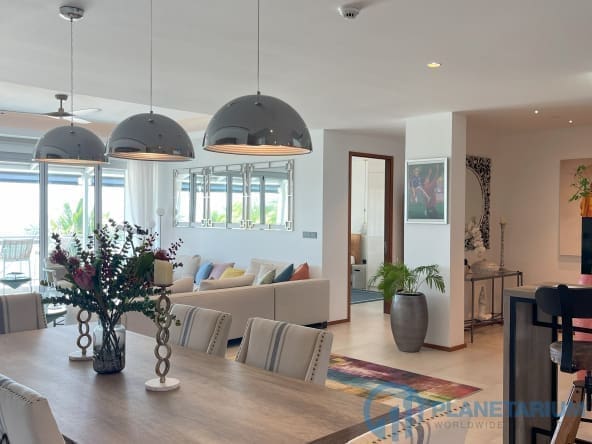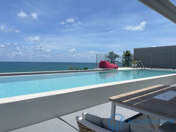 Ce penthouse en bord de mer, achevé en 2022, incarne le luxe moderne. Il présente une opportunité fantastique d’acquérir une propriété de première qualité en bord de mer à Phuket pour l’investissement ou la vie permanente. 🏠 L’appartement s’étend sur deux niveaux, le niveau inférieur comprenant trois chambres spacieuses avec salle de bains, un généreux espace salon et salle à manger, une cuisine occidentale entièrement équipée et une buanderie dédiée. Le balcon couvert offre un espace de brise et lumineux pour se détendre, avec une vue époustouflante à 180 degrés s’étendant de Bangtao Beach à droite à Layan Beach à gauche. 🌅