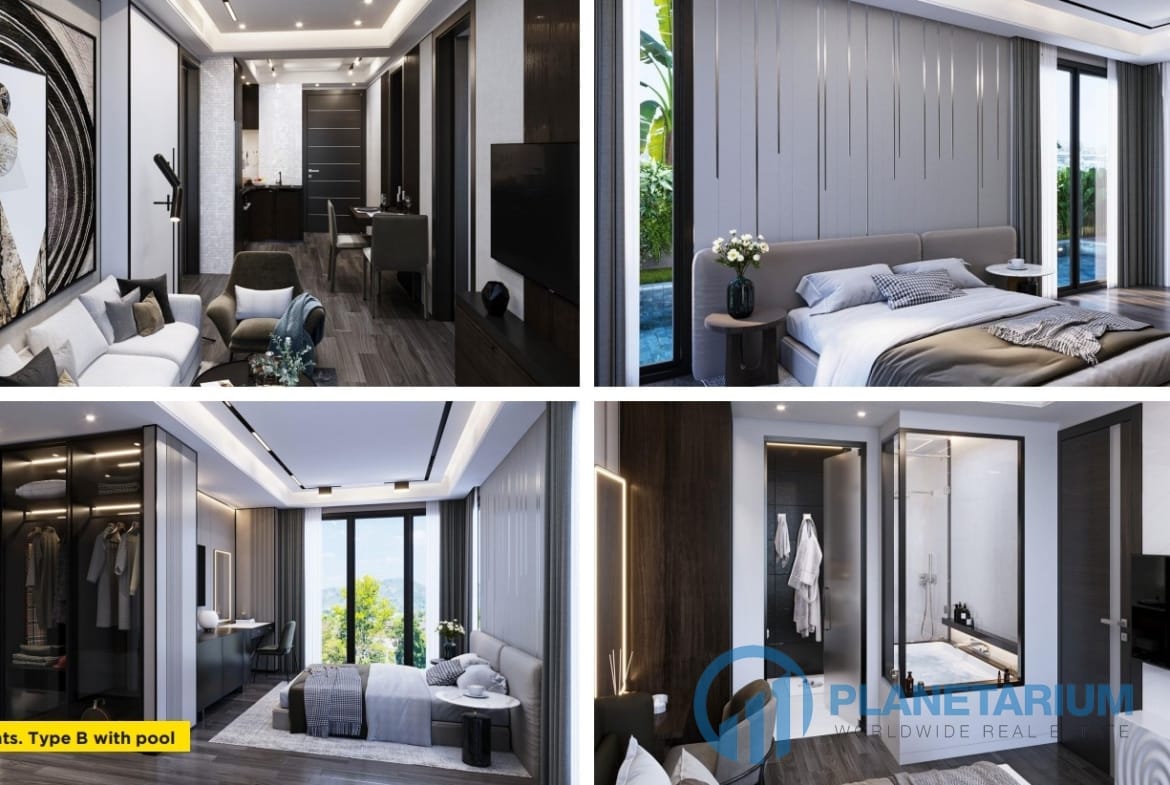 Ce projet de condominium exclusif offre un style de vie luxueux avec des installations de classe mondiale, faisant de lui l’endroit idéal pour vivre ou investir dans le très prisé quartier de Rawai.