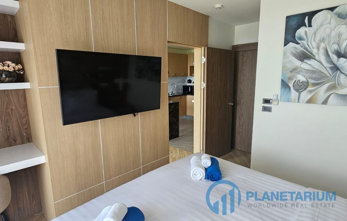 Cet appartement 1 chambre (📐 45 m²) offre une vue mer, 1 balcon et 1 salle de bain. Il est entièrement meublé et prêt à être occupé ✨.