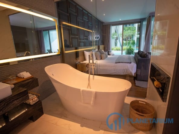 Les environs regorgent d’attractions touristiques, de marchés locaux et d’options de shopping, garantissant à la fois loisirs et commodité. La plage de Nai Harn est largement considérée comme la plus belle et la plus tranquille de Phuket, offrant un équilibre parfait entre beauté naturelle et confort moderne.