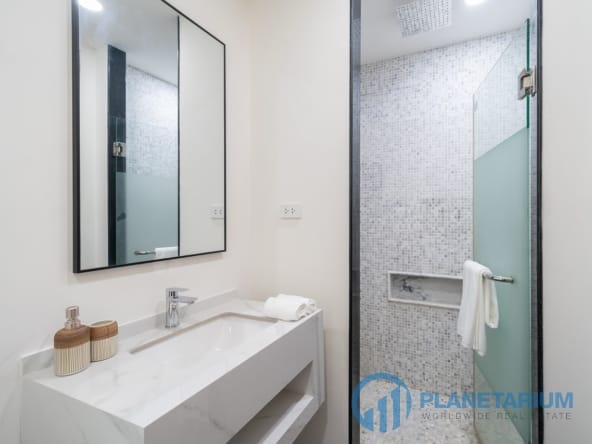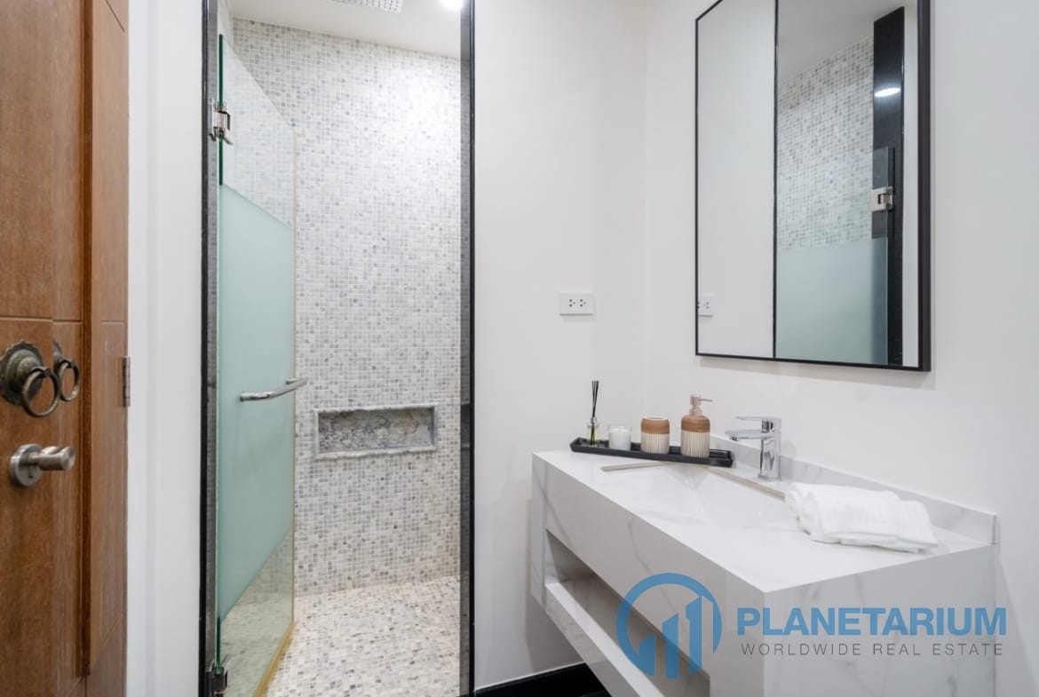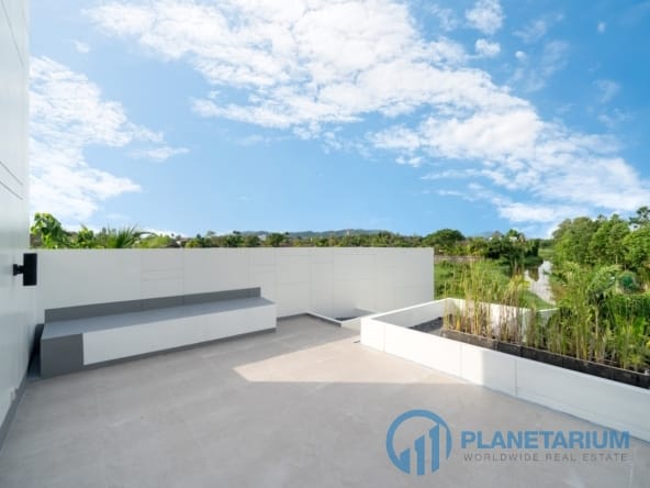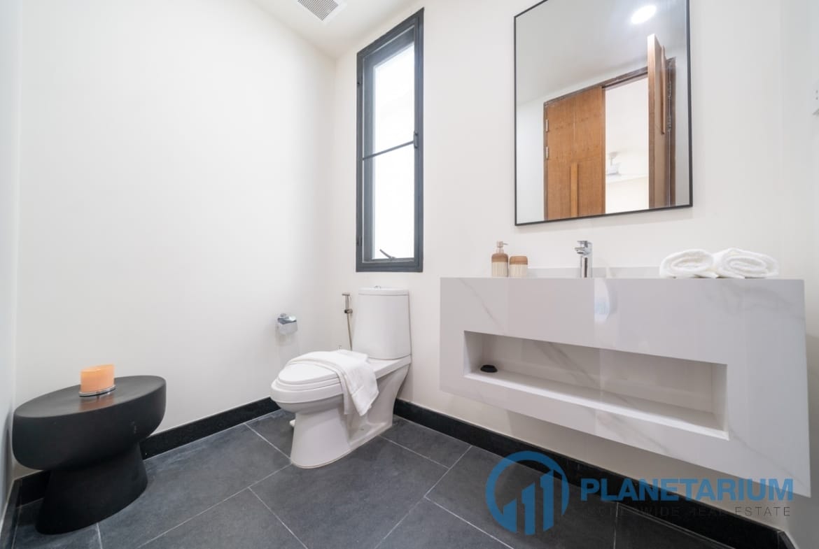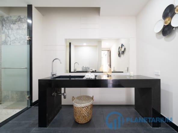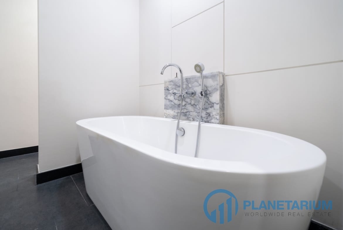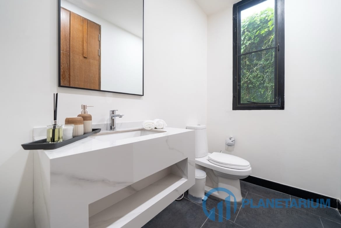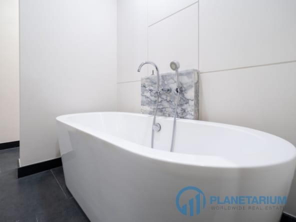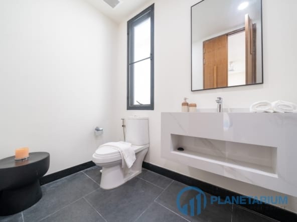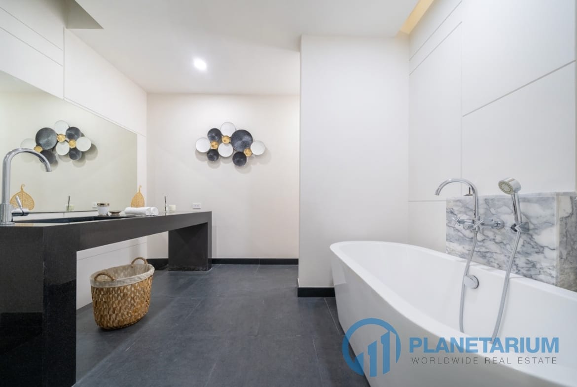 Cette villa exceptionnelle a été entièrement rénovée de fond en comble, y compris le remodelage de l’agencement, la démolition et la reconstruction des murs, et le remplacement complet de chaque détail.
