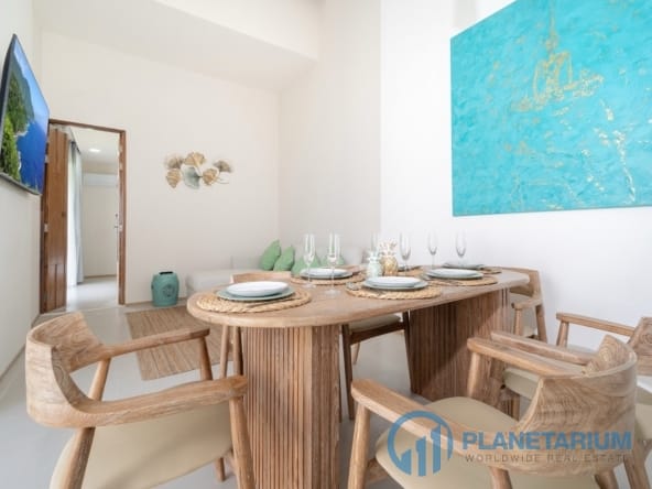 Tous les meubles ont été soigneusement sélectionnés et importés d’Indonésie et du nord de la Thaïlande, ce qui confère à la maison une atmosphère tropicale chaleureuse et élégante.