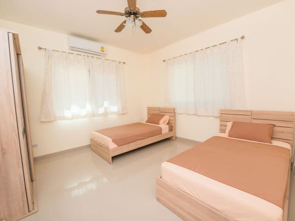 – trois chambres, deux salles de bains (douches, salle de bains)
