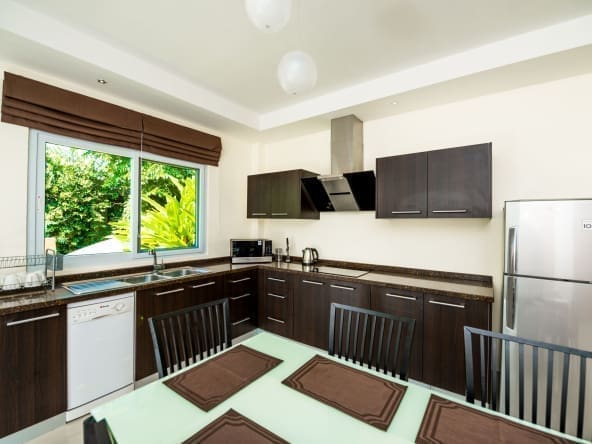 – cuisine européenne moderne équipée (four à micro-ondes, four électrique, réfrigérateur, bouilloire, mixeur, lave-vaisselle)