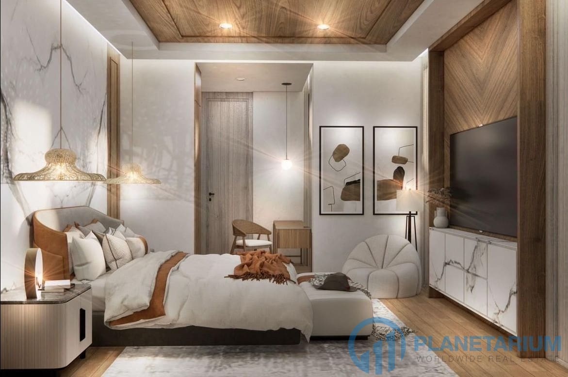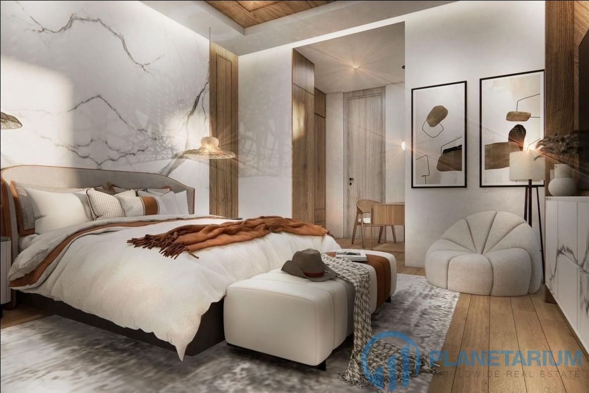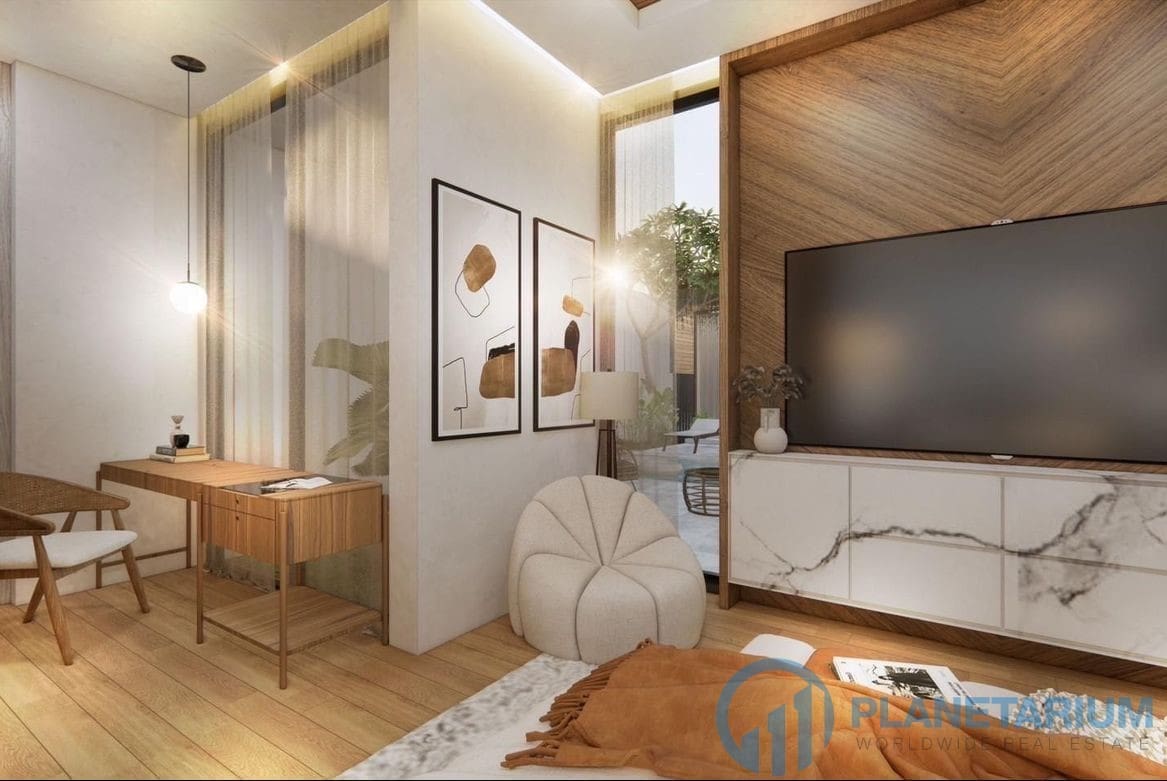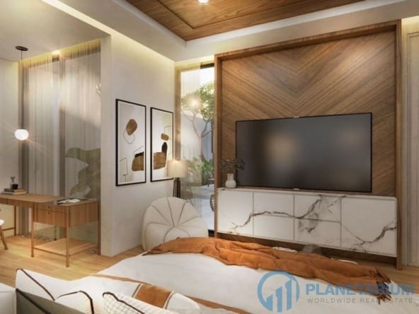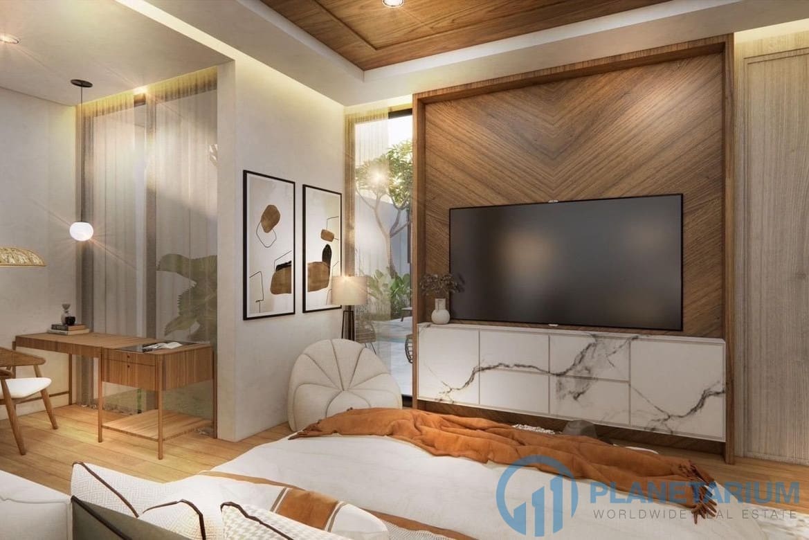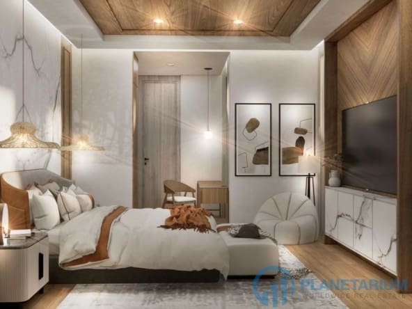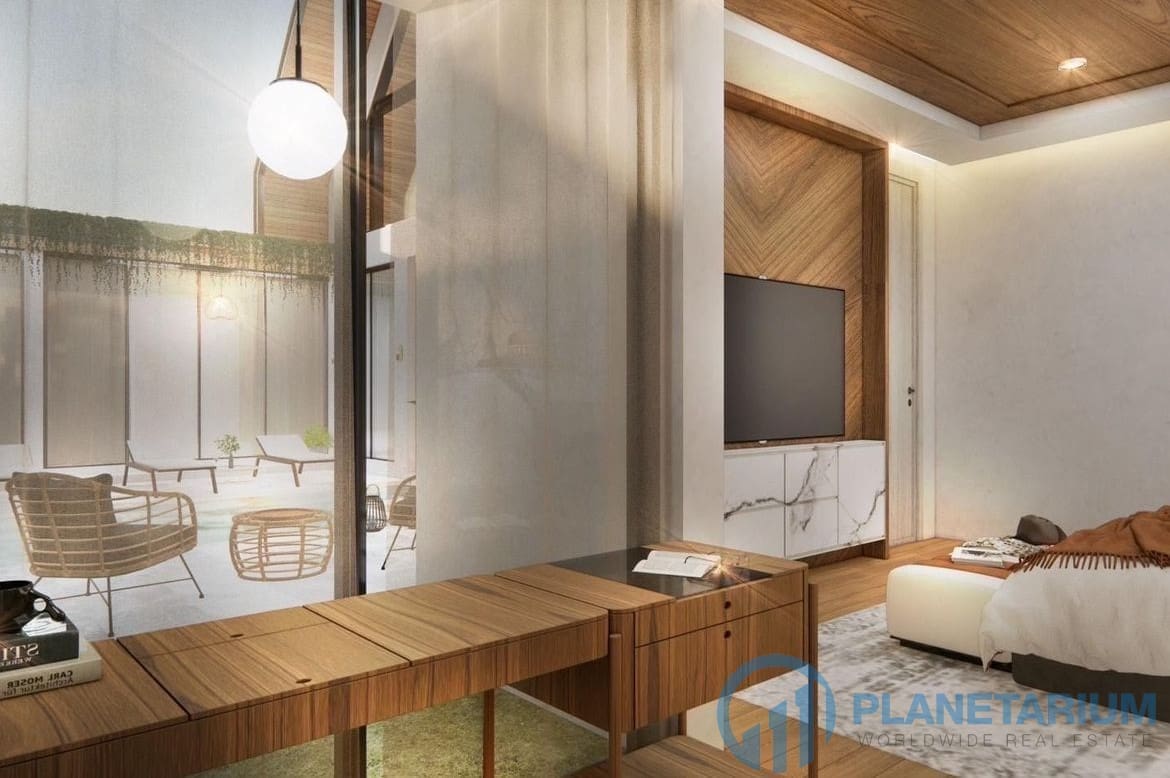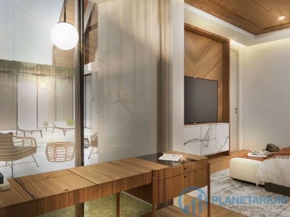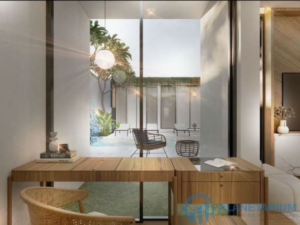 Chaque villa dispose d’un jardin paysager luxuriant entourant une piscine privée sereine, entourée de plantes tropicales.