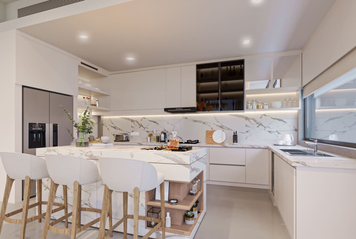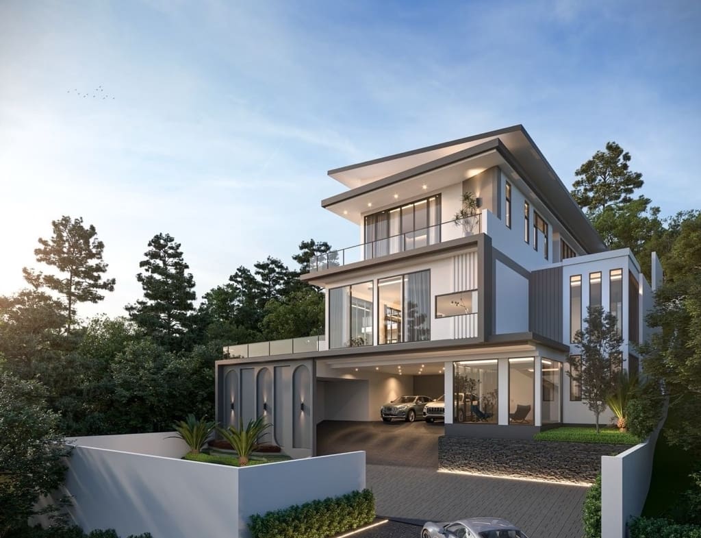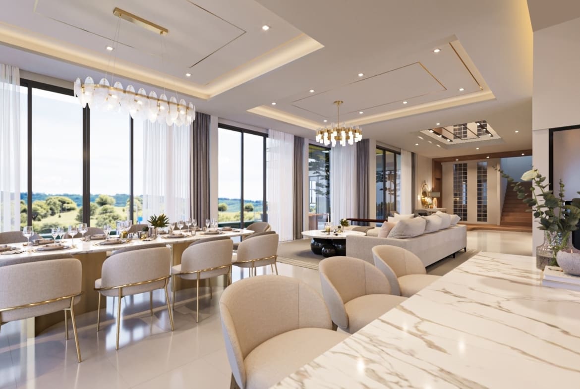 - Chaque villa s’étend sur trois niveaux et offre un design artistique distinctif.