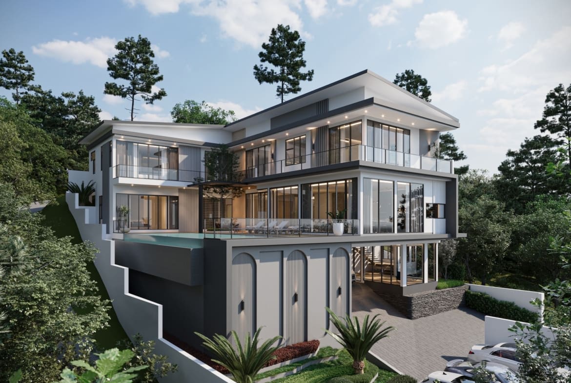 - Projet de villa luxueuse avec piscine, nichée à flanc de colline.
