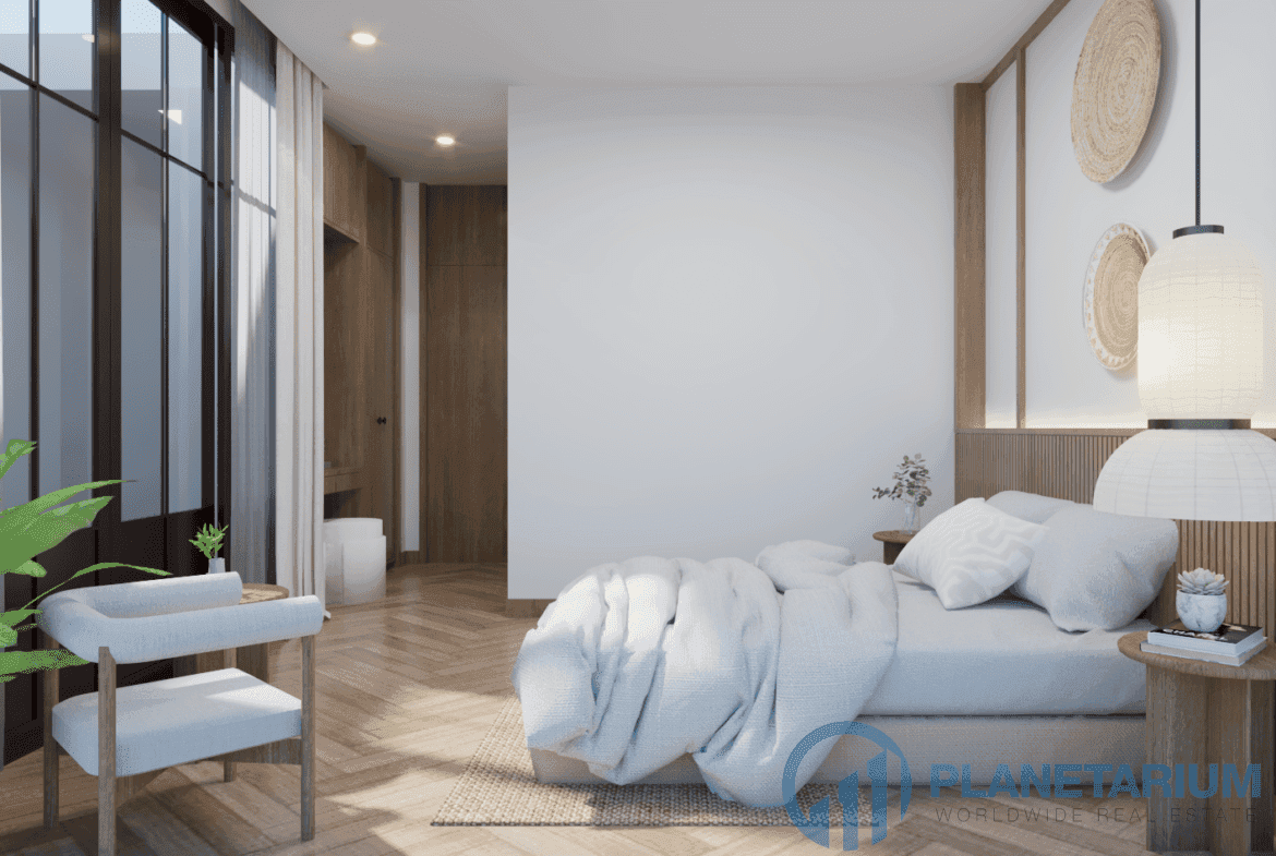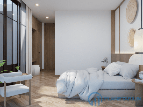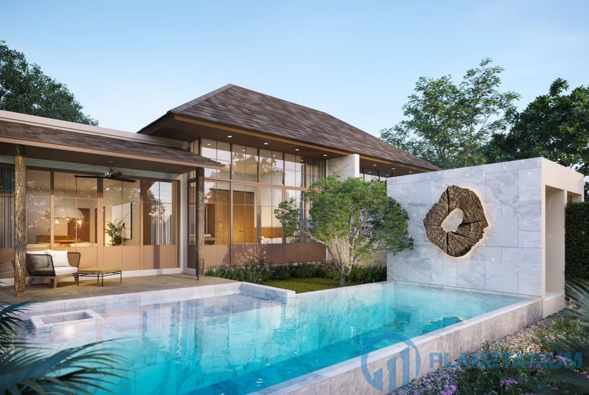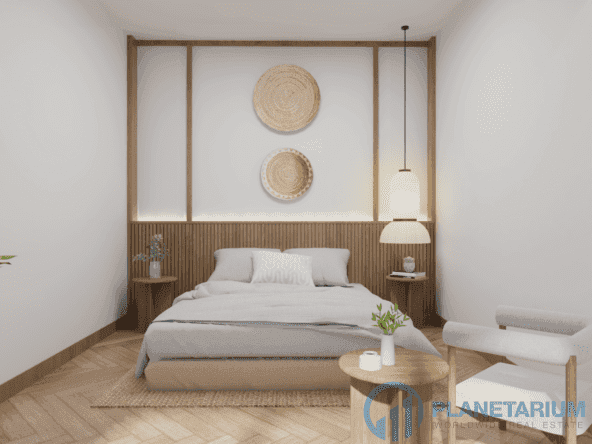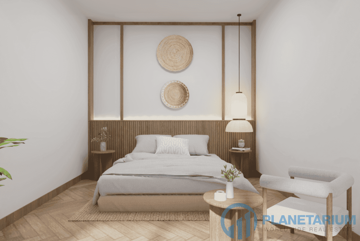 Toutes les villas sont composées de deux chambres avec salle de bains privative. La chambre principale dispose d’une grande salle de bains avec baignoire et douche séparée. Elles ont également un accès direct à la piscine privée. Pour la piscine, il y a un patio et un petit jardin sur le côté. Le salon et la salle à manger ont un design moderne avec une cuisine et un îlot central. et s’ouvre sur la terrasse de la piscine. Cette villa est idéale pour les couples ou les petites familles. ou les investisseurs qui souhaitent posséder une maison de vacances à louer dans des endroits populaires