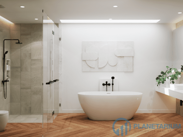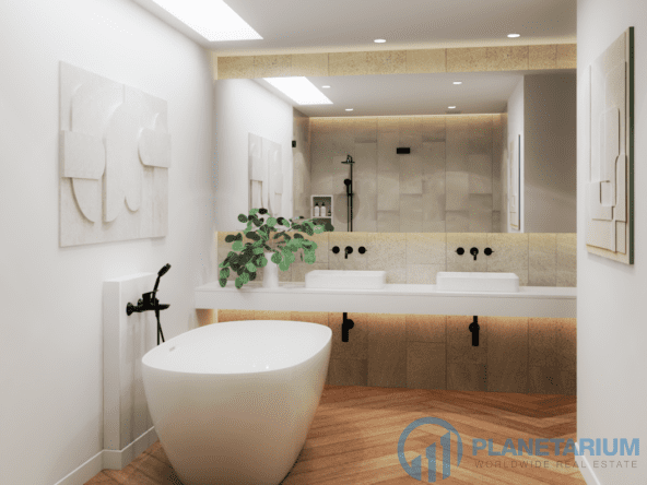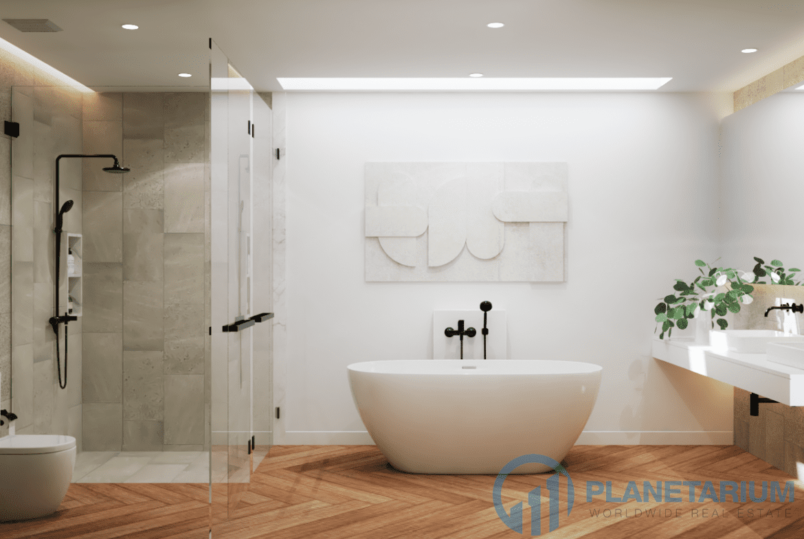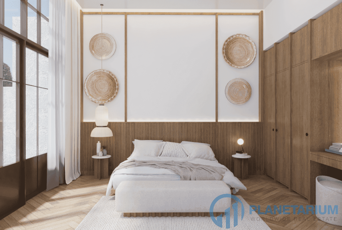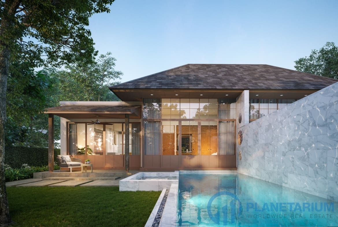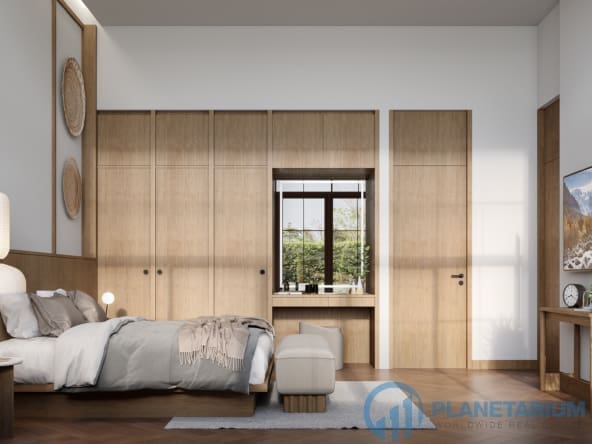 Toutes les villas sont composées de deux chambres avec salle de bains privative. La chambre principale dispose d’une grande salle de bains avec baignoire et douche séparée. Elles ont également un accès direct à la piscine privée. Pour la piscine, il y a un patio et un petit jardin sur le côté. Le salon et la salle à manger ont un design moderne avec une cuisine et un îlot central. et s’ouvre sur la terrasse de la piscine. Cette villa est idéale pour les couples ou les petites familles. ou les investisseurs qui souhaitent posséder une maison de vacances à louer dans des endroits populaires