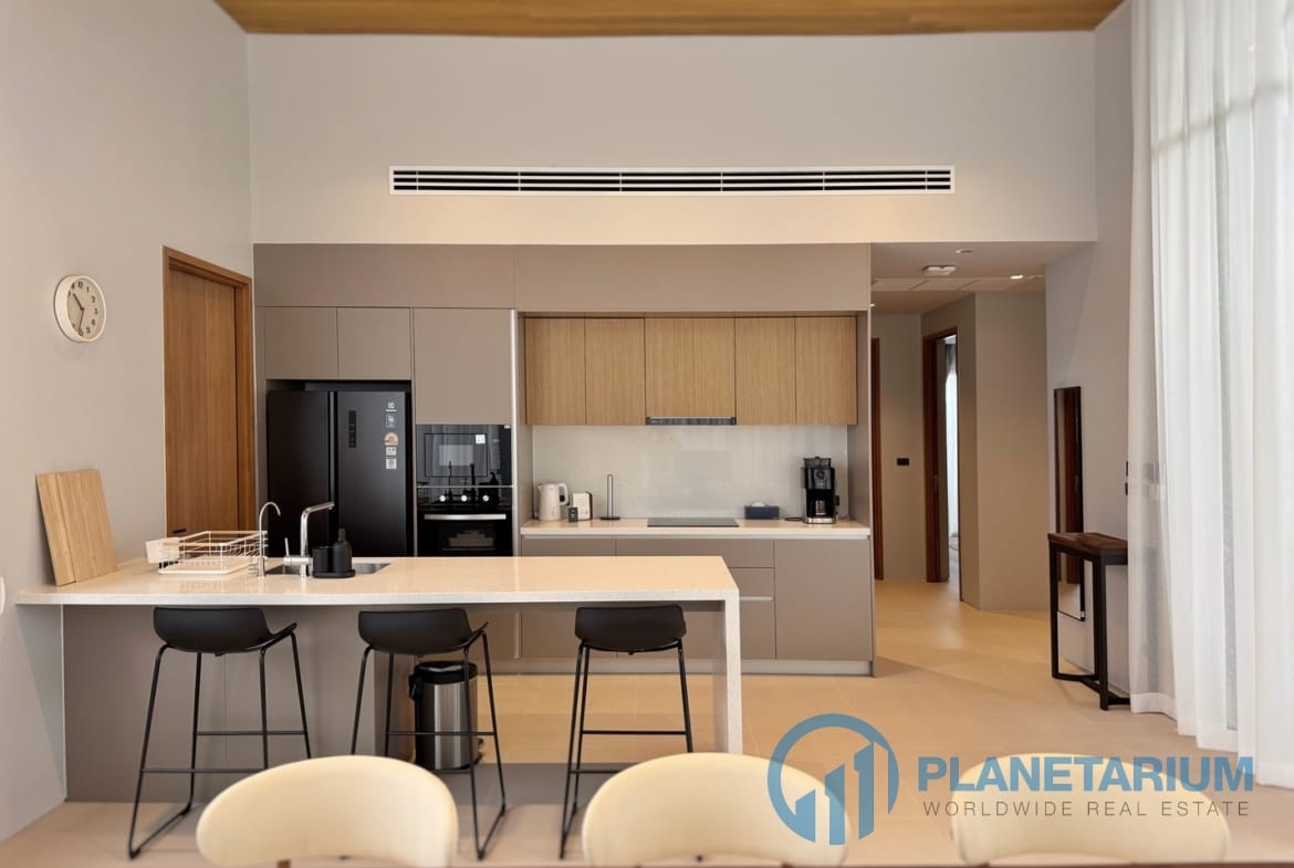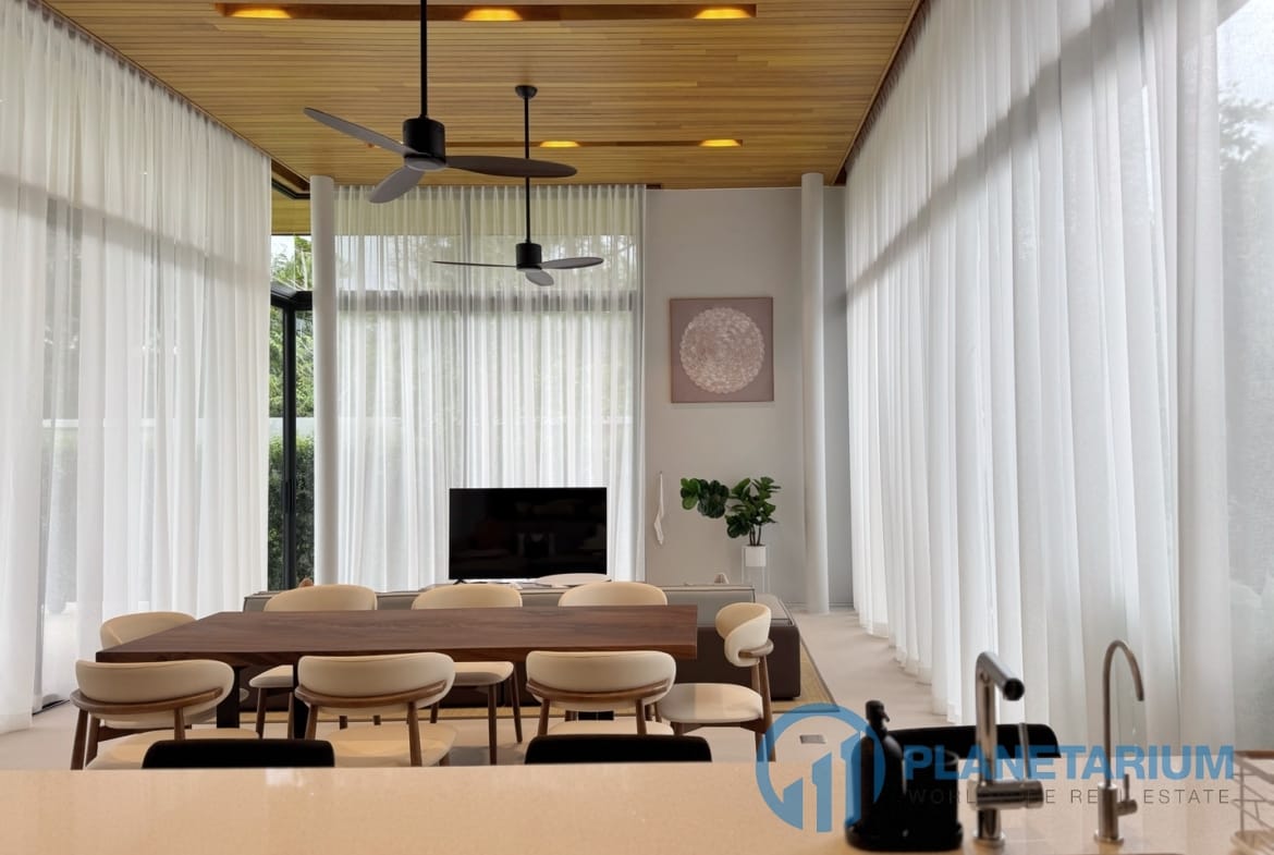 Doświadcz idealnej harmonii <b>naturalnego piękna</b> i <b>nowoczesnego komfortu</b> w tej oszałamiającej 3-pokojowej willi, zaprojektowanej z myślą o elegancji i spokoju. Wnętrze podkreśla użycie <b>premium drewna i materiałów mineralnych</b>, tworząc spokojną i stylową przestrzeń mieszkalną, która płynnie łączy się z bujnym otoczeniem.