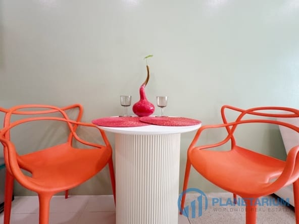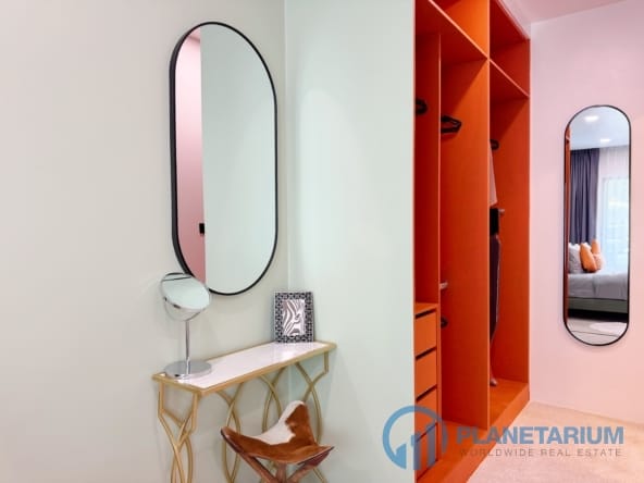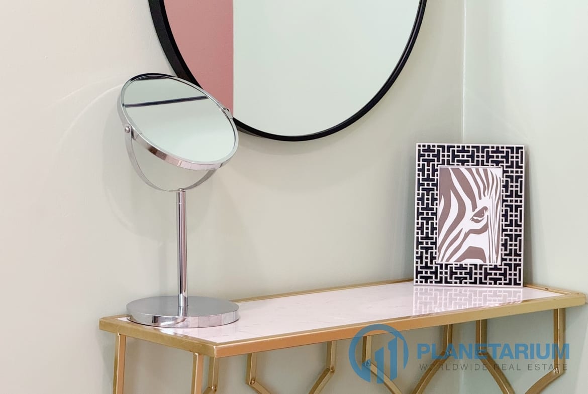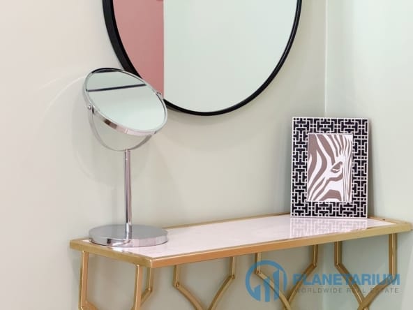 W pełni umeblowane: łóżko, toaletka, zestaw jadalny, część wypoczynkowa