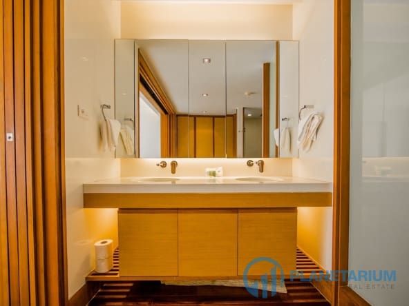 - Sypialnie: Odpręż się w komforcie w głównej sypialni z luksusowym łóżkiem king-size, wbudowaną szafą, toaletką z lustrem i łazienką z prysznicem, wanną i toaletą. Dwie sypialnie gościnne oferują łóżka queen-size, szafy i biurka z lustrami.