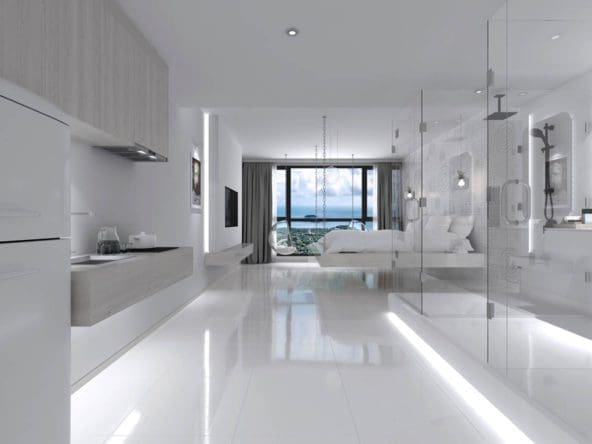 Dostępne będą 2 rodzaje układów: studio – 24 m2, apartament z jedną sypialnią – 32 m2.