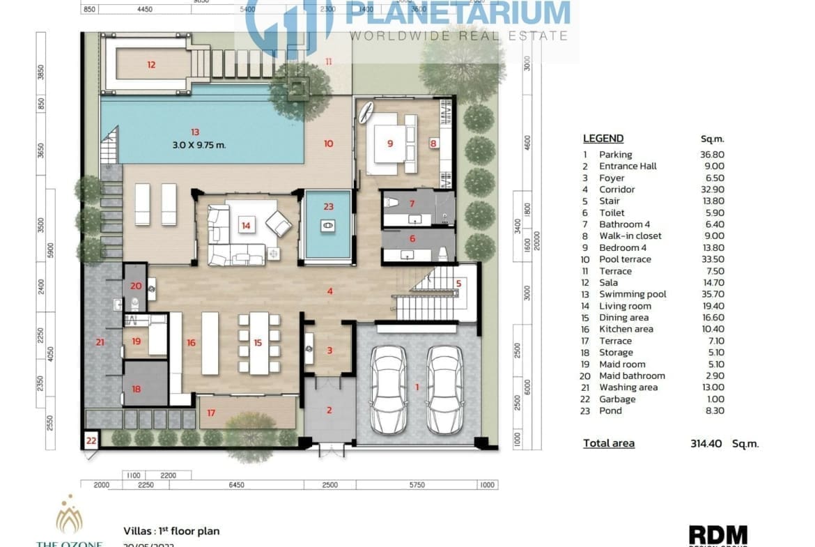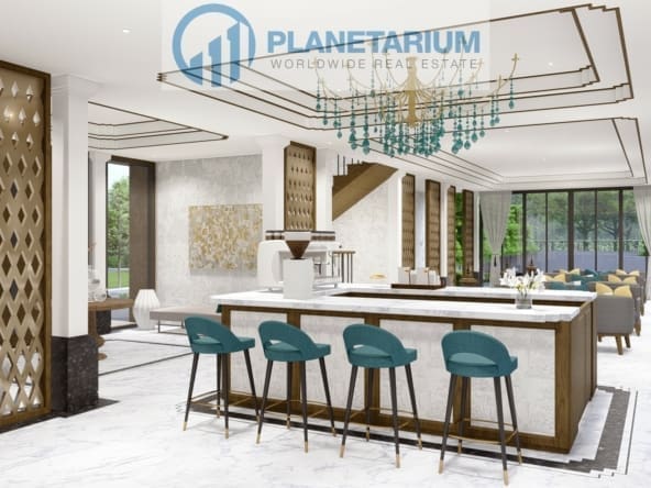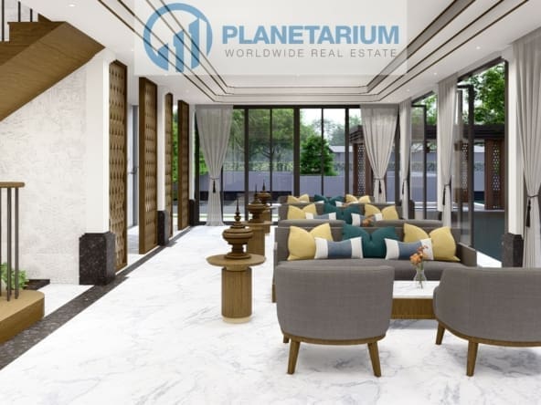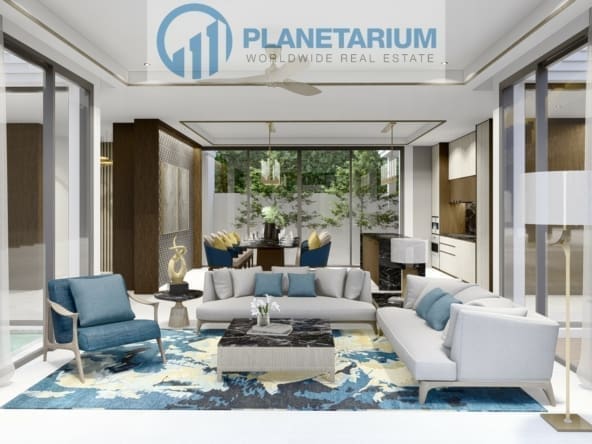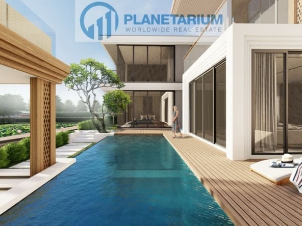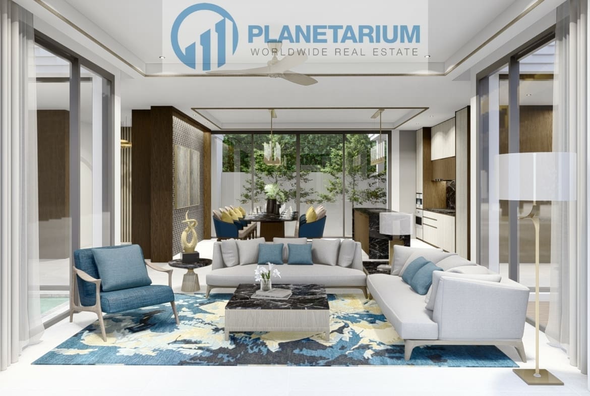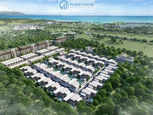 Obejmujący rozległy kompleks 42 luksusowych willi z basenem, nowoczesne wille z 4 sypialniami i łazienką oraz pokojem dla pokojówki na parterze. Nowoczesna kuchnia ma duży otwarty plan, który sięga do jadalni i salonu. Elegancka część dzienna wychodzi na prywatny basen otoczony tropikalnym ogrodem i rozległy taras przy basenie z częścią wypoczynkową na świeżym powietrzu. Opcjonalnie pokój pokojówki na pierwszym piętrze i pomieszczenie gospodarcze można połączyć i przekształcić w piątą sypialnię.