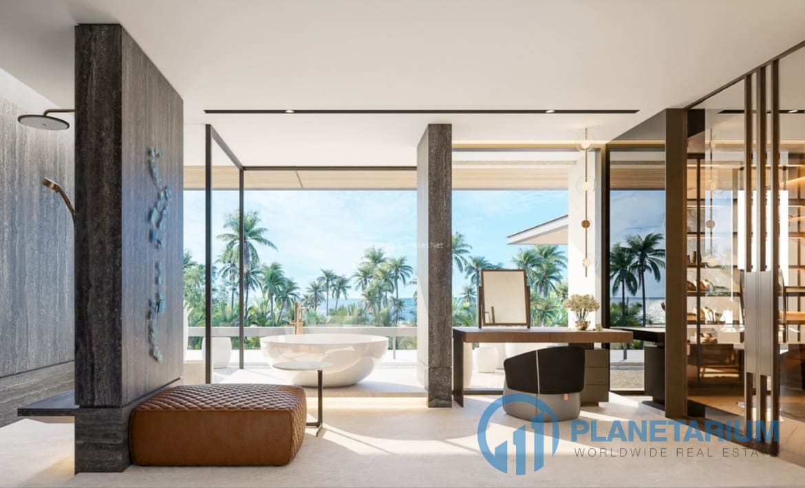 - Najwyższe piętro: Główna sypialnia z garderobą i przestronną łazienką z okrągłą wolnostojącą wanną. Z tego piętra można podziwiać wspaniałe widoki na Morze Andamańskie pośród kołyszących się drzew kokosowych.