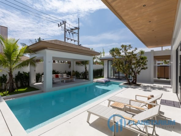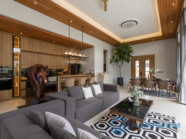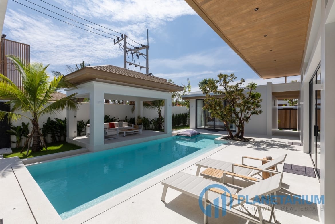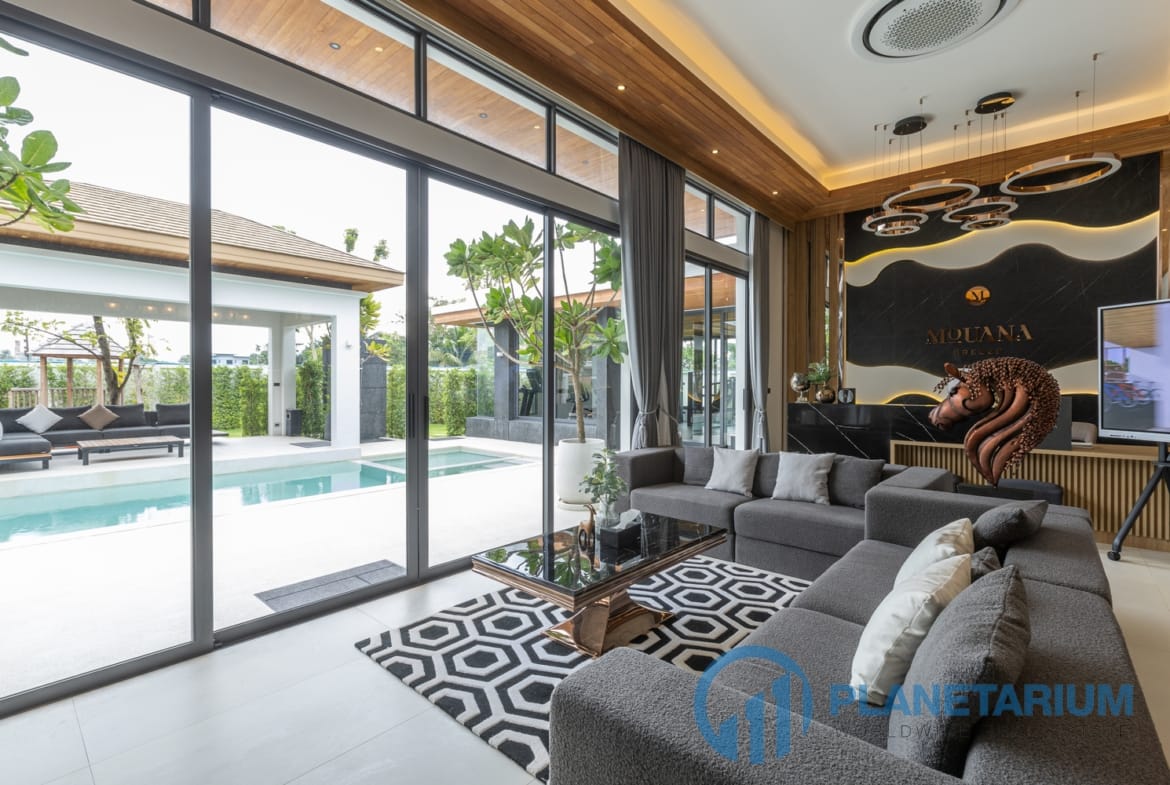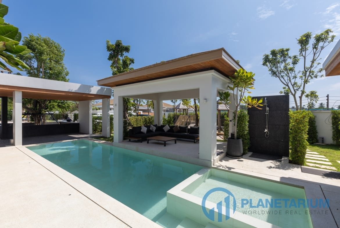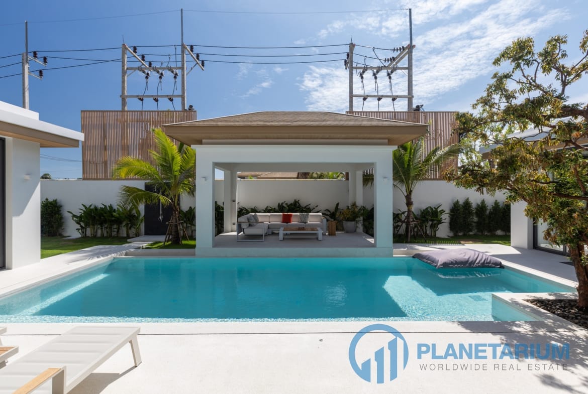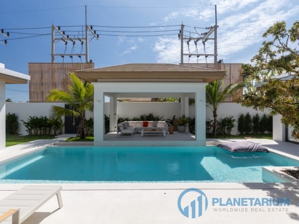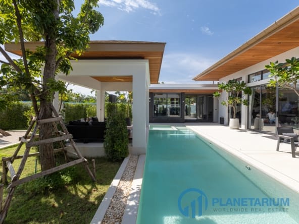 Luksusowa jednopiętrowa willa, zaprojektowana we współczesnym tropikalnym stylu, zapewnia komfortowe i luksusowe życie w spokojnym otoczeniu.