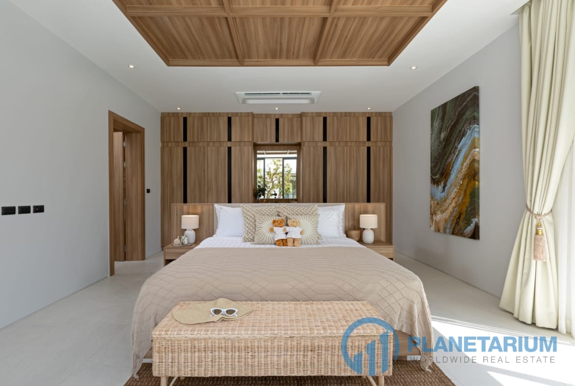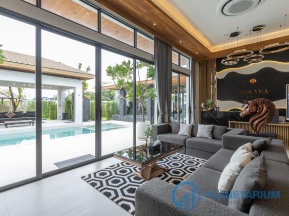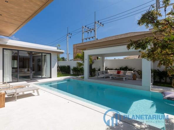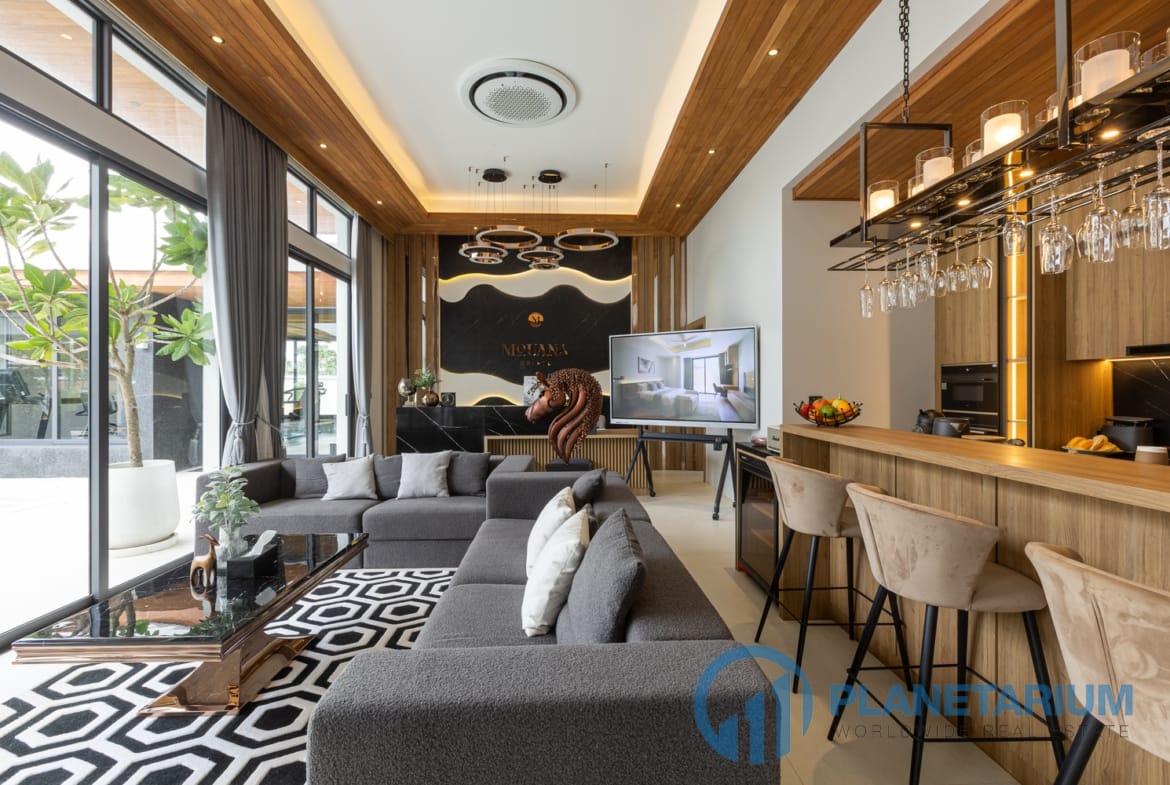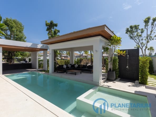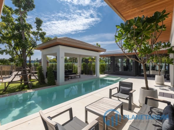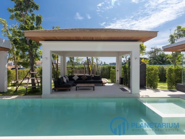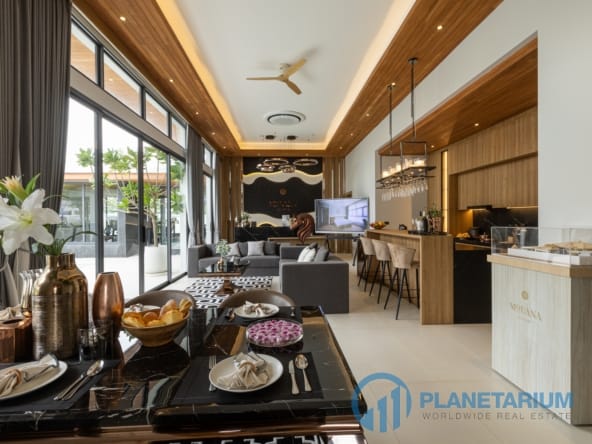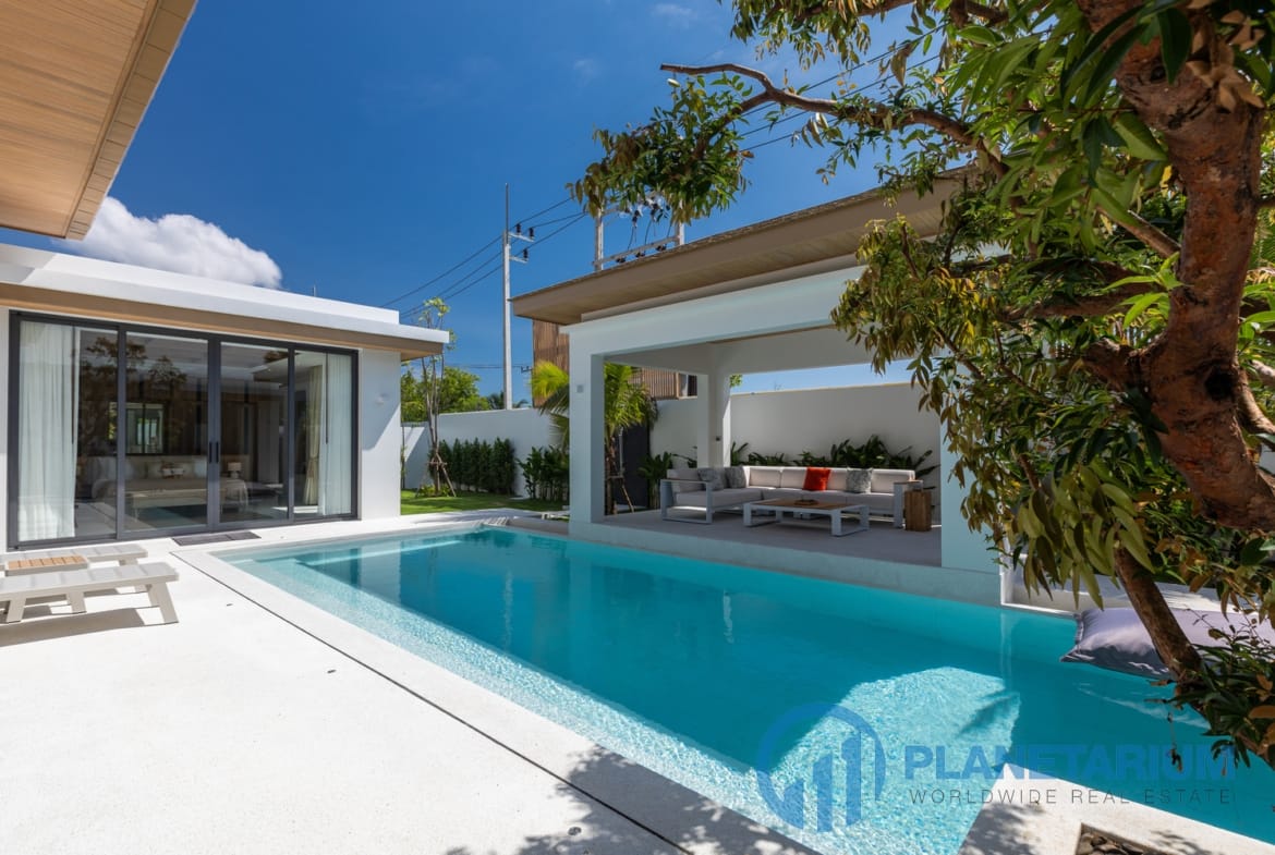 Luksusowa jednopiętrowa willa, zaprojektowana we współczesnym tropikalnym stylu, zapewnia komfortowe i luksusowe życie w spokojnym otoczeniu.