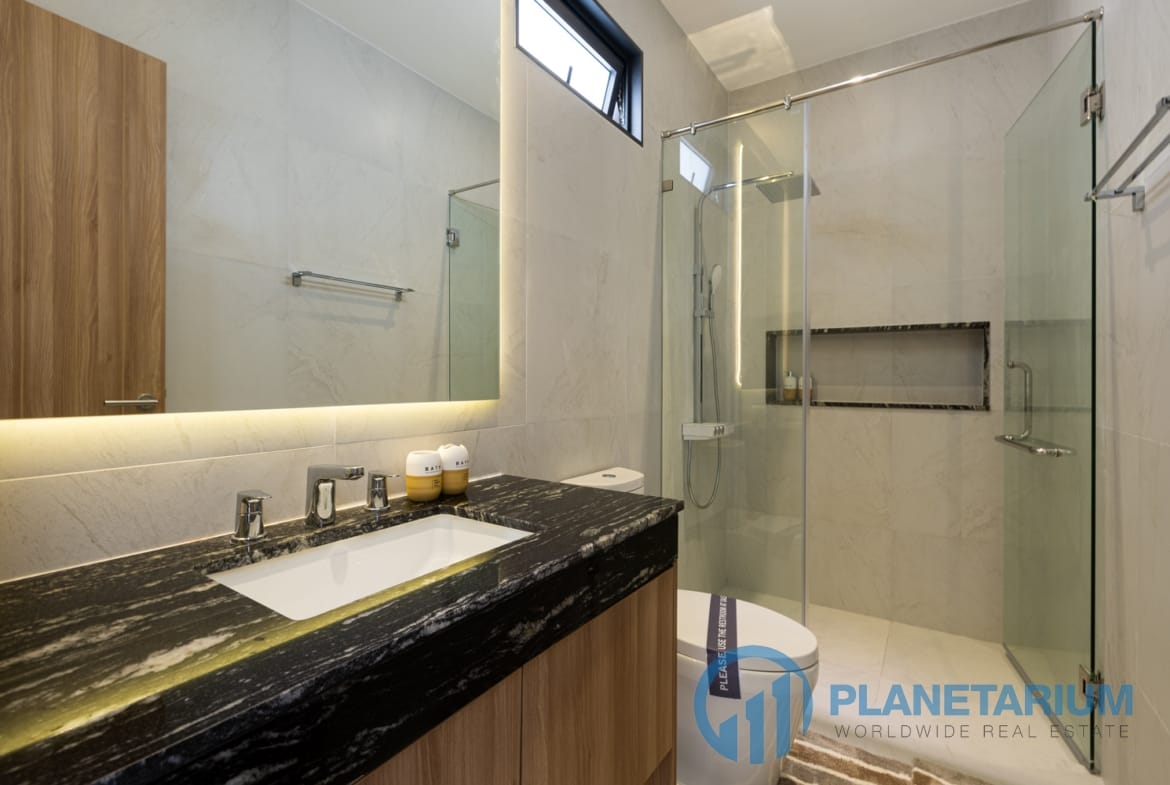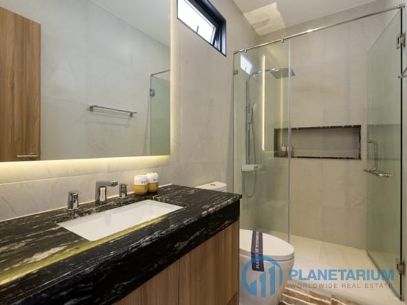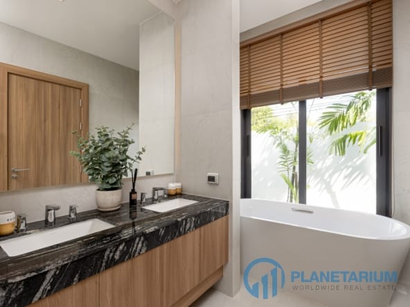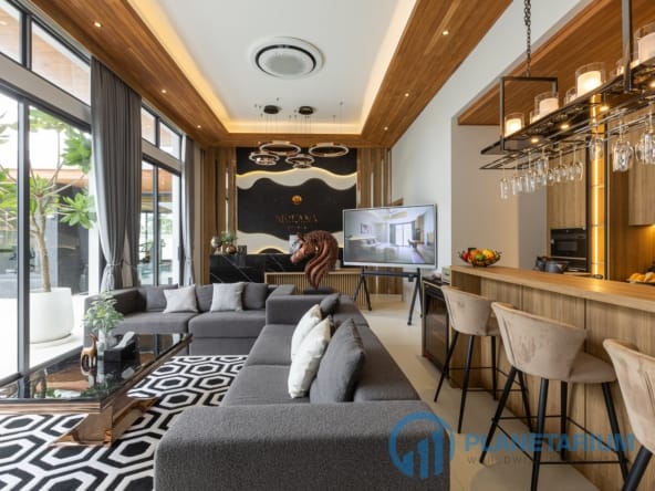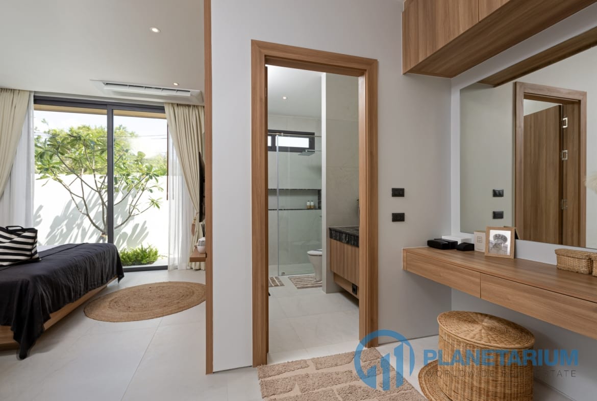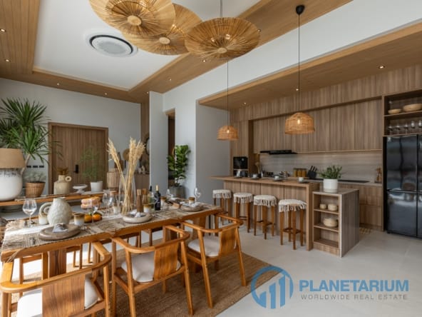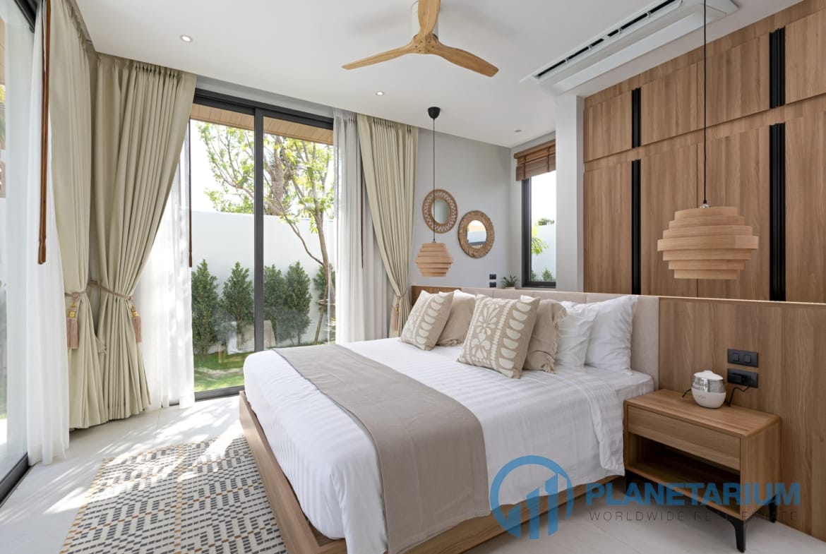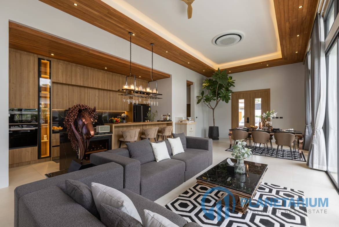 Luksusowa jednopiętrowa willa, zaprojektowana we współczesnym tropikalnym stylu, zapewnia komfortowe i luksusowe życie w spokojnym otoczeniu.
