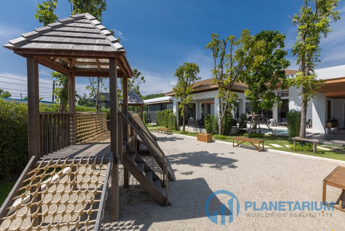 - Dodatkowe udogodnienia obejmują tajską kuchnię, łazienkę dla gości, prywatny basen, prysznic na świeżym powietrzu, ogrody, schowek, kryty parking i wiele innych.