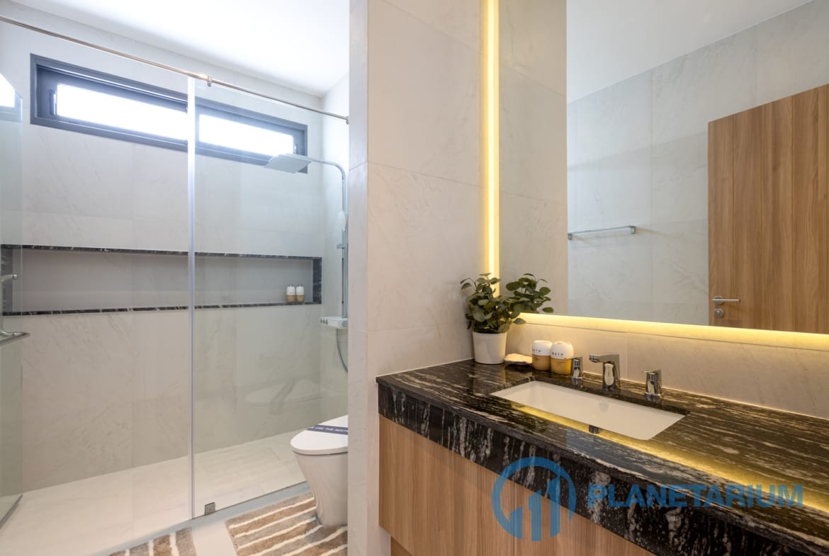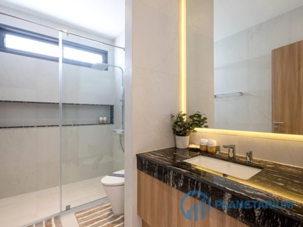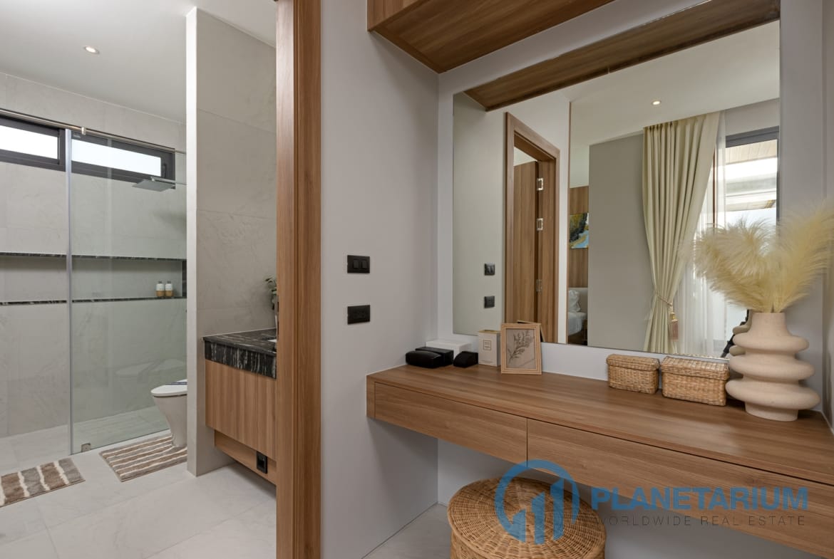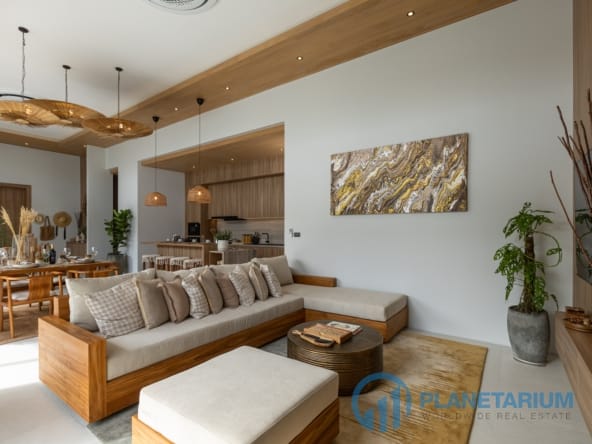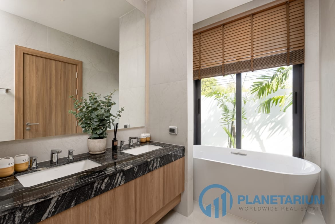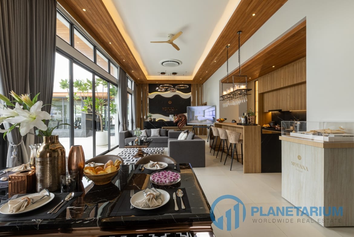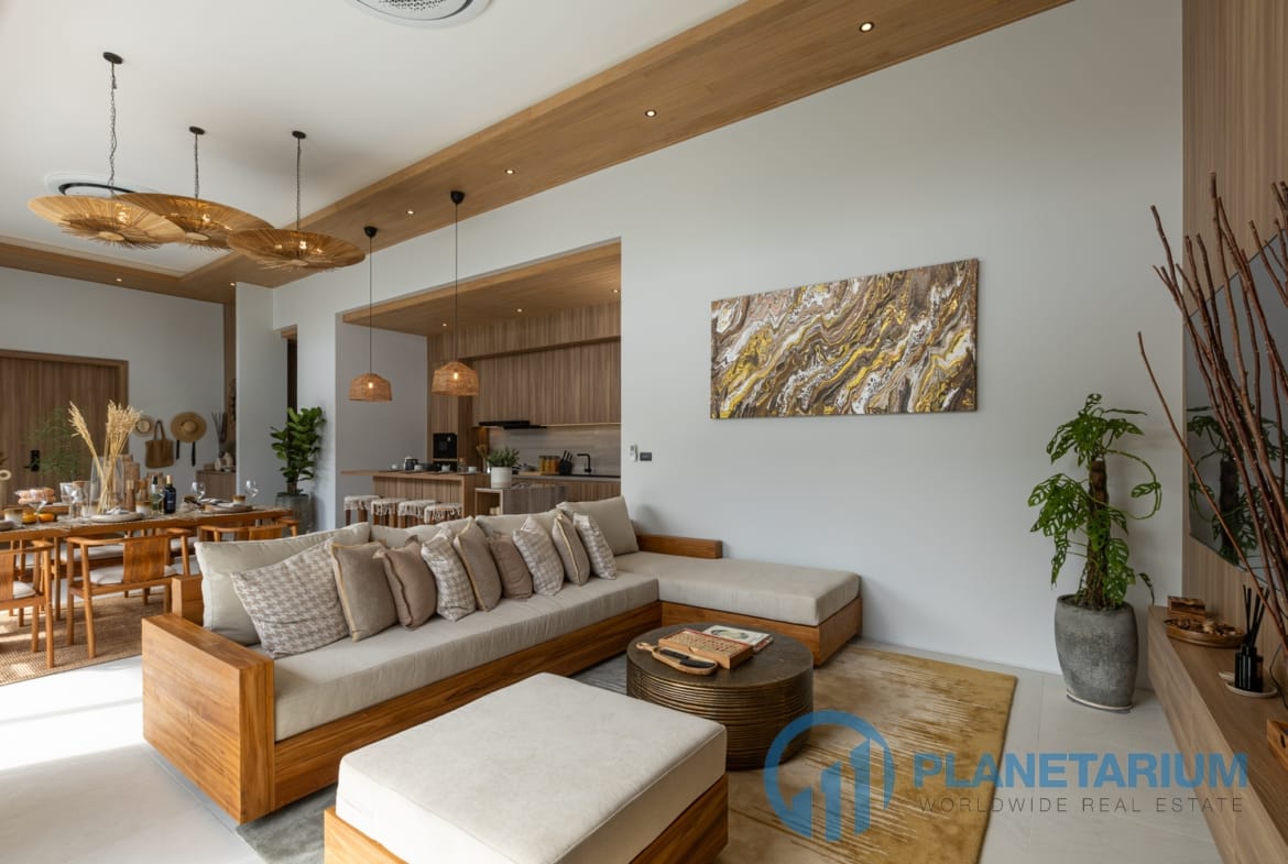 - Każda willa oferuje przestronne, przestronne wnętrza podkreślone wysokimi sufitami.