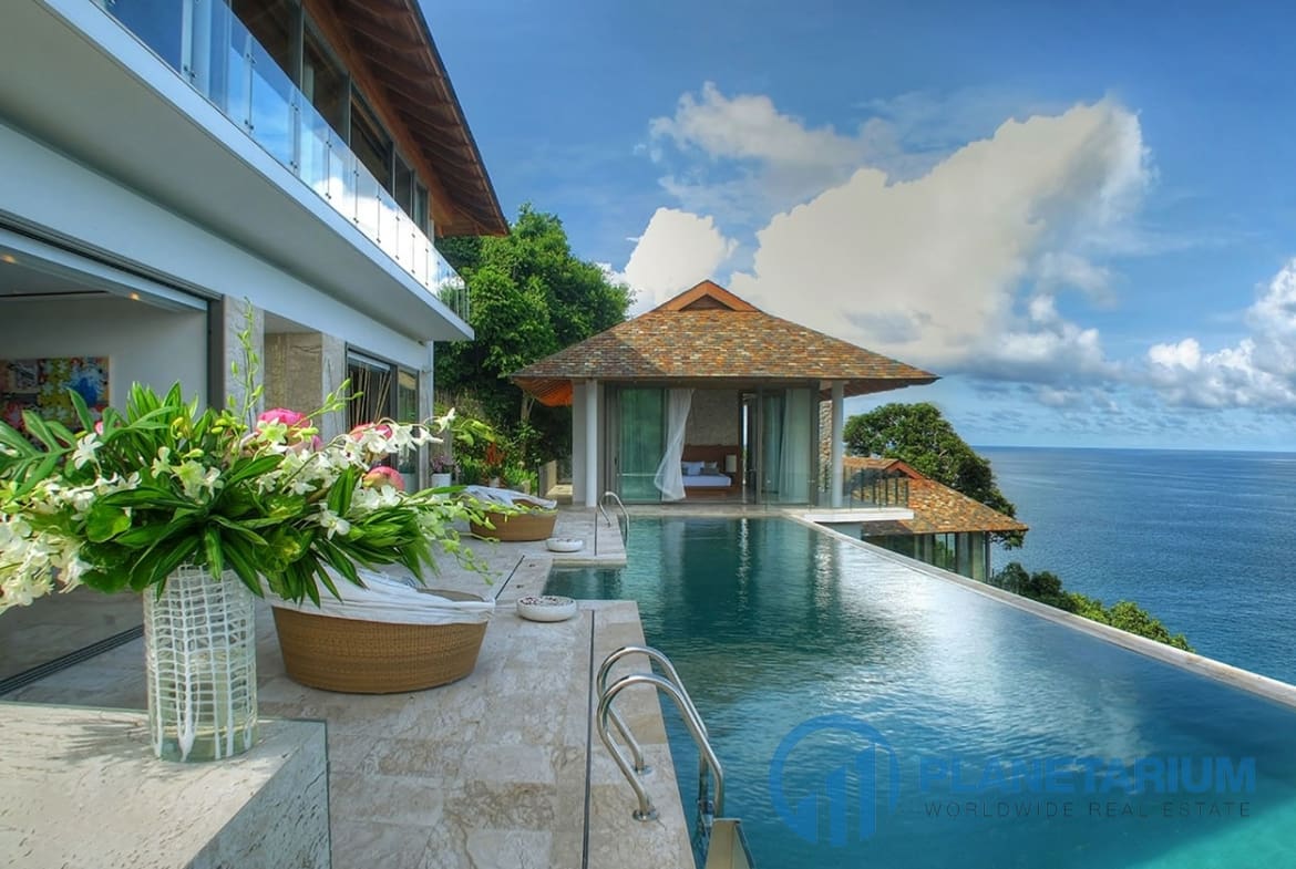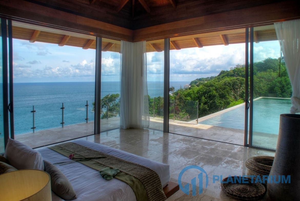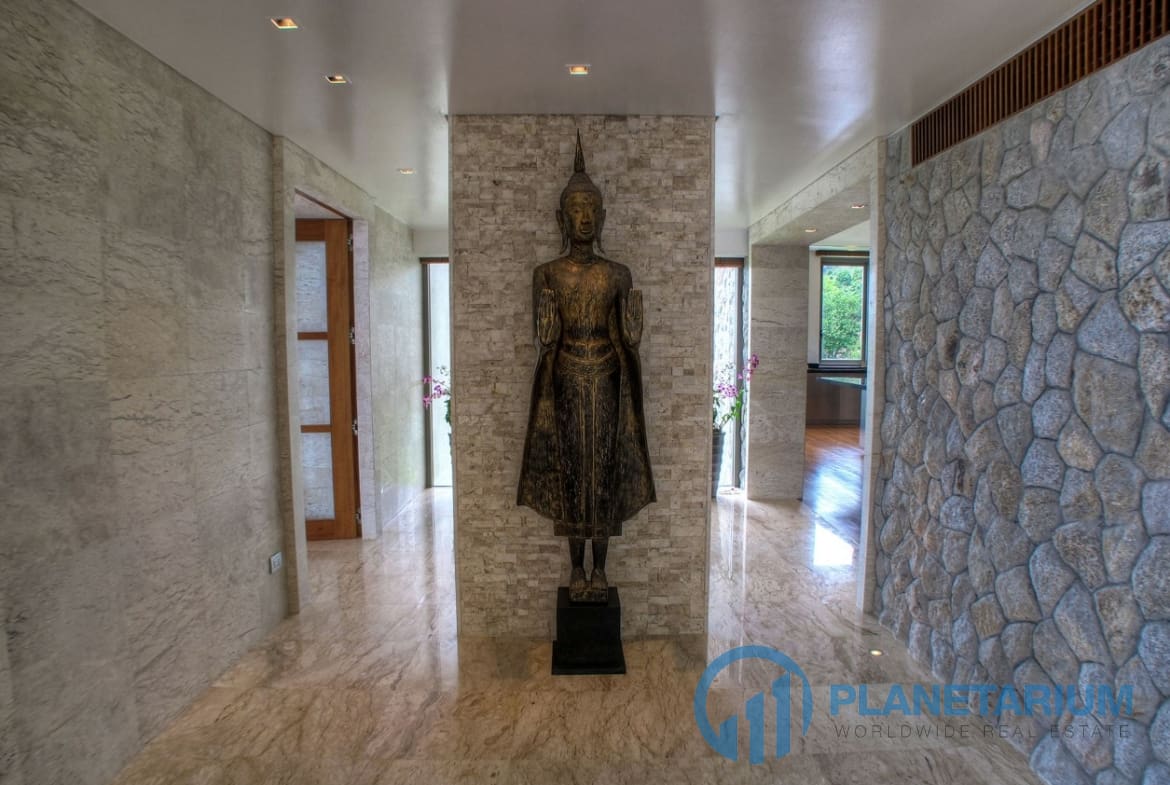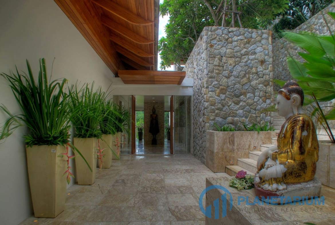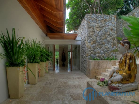Wdzięcznie usytuowana na zboczu wzgórza w prywatnej posiadłości, willa stanowi spokojne schronienie starannie zaprojektowane tak, żeby harmonizować z zapierającym dech w piersiach nadmorskim otoczeniem. 🌊 Szerokie wykorzystanie drewna, kamienia i marmuru nadaje naturalny urok zarówno luksusowym wnętrzom, jak i zewnętrznym przestrzeniom życiowym, podczas gdy eklektyczna kolekcja sztuki i antyków dodaje urzekającego uroku w całej willi. Perłą jest 17,5-metrowy basen bez krawędzi z wbudowanym jacuzzi, odbijający kolory nieba w dzień i zamieniający się w gwiaździsty spektakl nocą.