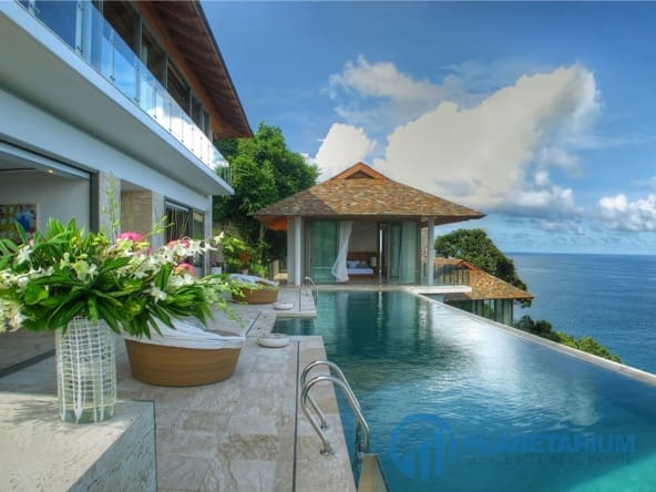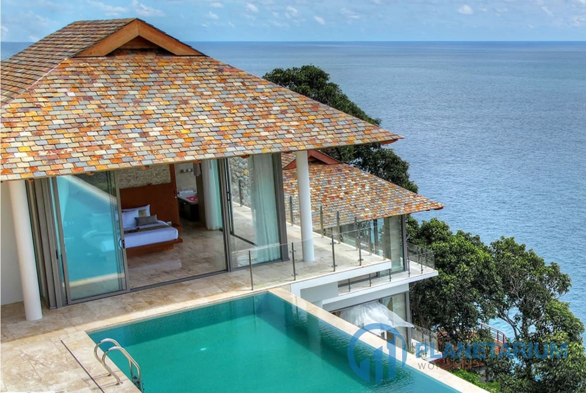 Ta wyjątkowa willa uosabia dyskretny luksus, położona na zielonym cyplu między plażami Kamala i Patong wzdłuż malowniczego zachodniego wybrzeża Phuket. 🌴 Zaprojektowana przez paryskiego architekta Arte Charpentier, sześciosypialniana willa oferuje oazę spokoju i luksusu dla grup lub dużych rodzin.