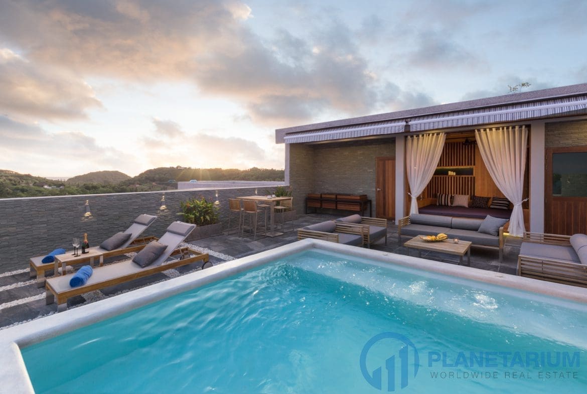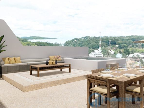 Apartament z widokiem na morze położony w rejonie Rawai, na południu Phuket. Apartament został starannie zaprojektowany z myślą o luksusowej atmosferze i komforcie życia. Z każdej jednostki można podziwiać niekończący się widok na zatokę Rawai i spędzać czas w udogodnieniach projektu, takich jak duży basen, klub, opalanie odpowiednie dla każdego stylu życia. Projekt znajduje się 5 minut od słynnych plaż – Rawai i Nai Harn. Plaża R awai słynie z jedzenia i owoców morza, podczas gdy Nai Harn jest idealnym miejscem do pływania i opalania się na wakacjach. Poza tym okolica jest pełna kawiarni, barów i spa, w których każdy członek rodziny może miło spędzić czas. Projekt to 5-piętrowy projekt apartamentowy składający się z 2 budynków z 14 jednostkami, ukończony w 2017 roku.