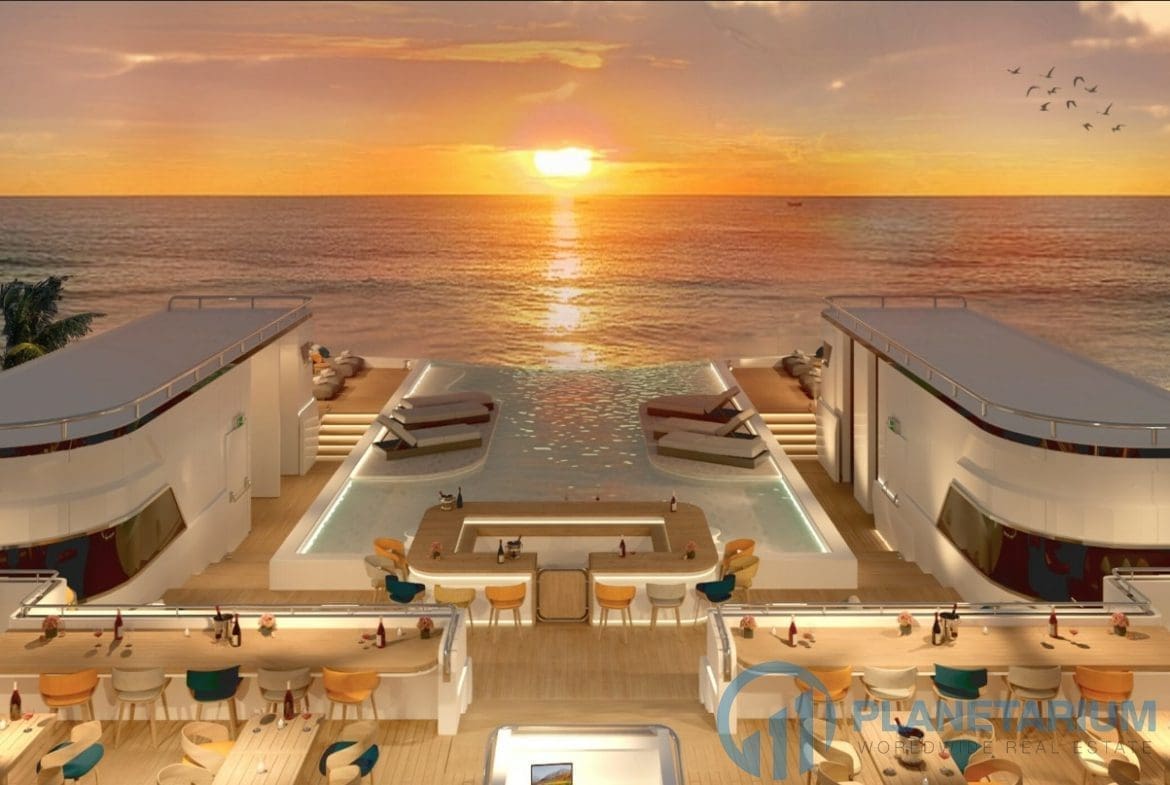 Wszystkie nasze jednostki oferują niezakłócony widok na morze. W pełni umeblowany nowoczesnymi meblami światowej klasy marek. Udogodnienia w ramach projektu, które spełniają międzynarodowe standardy, obejmują centrum fitness, klub dla dzieci, restaurację, bar, saunę, łaźnię parową, basen na dachu, salon i doskonałą obsługę całodobowej recepcji.