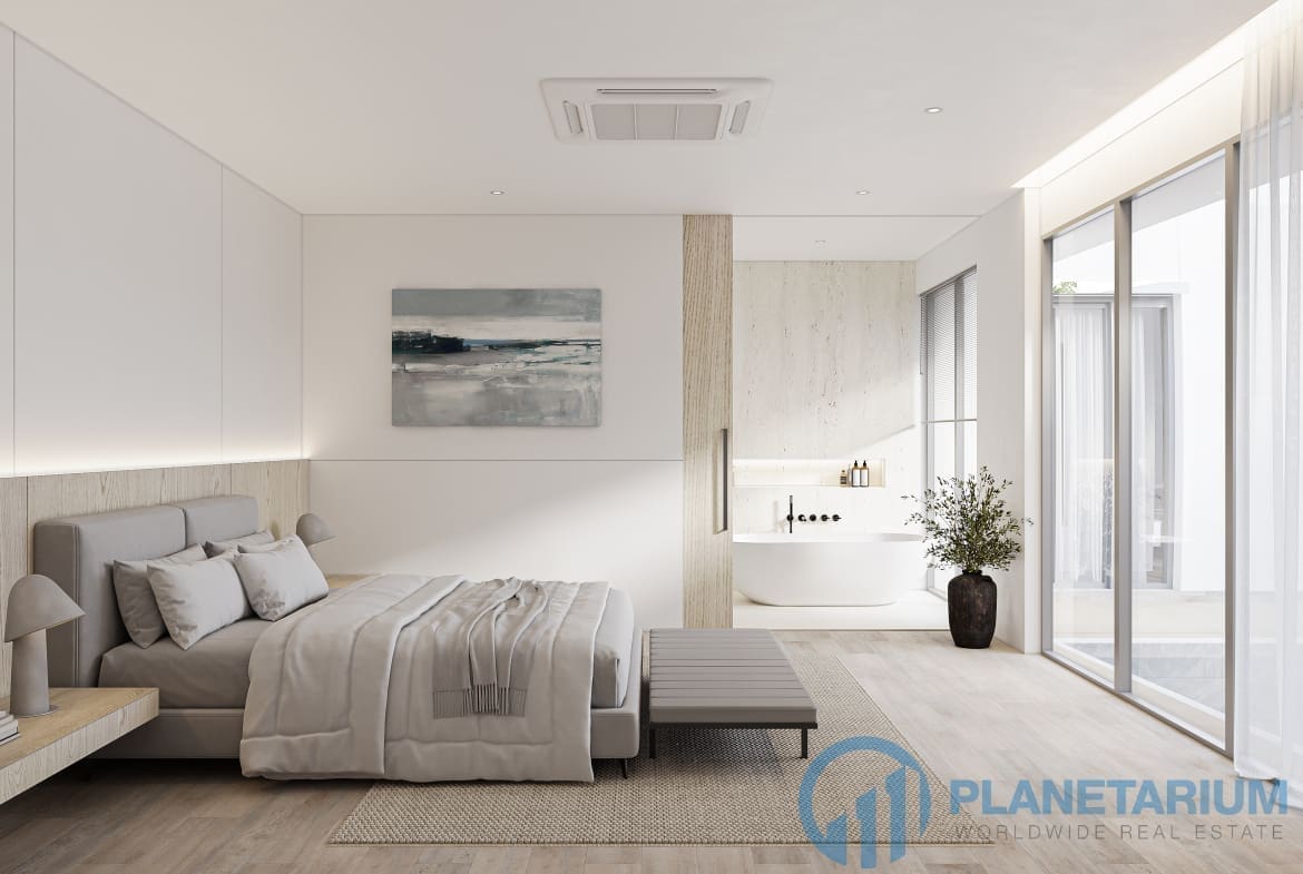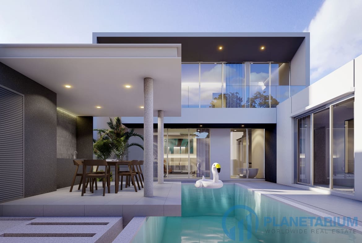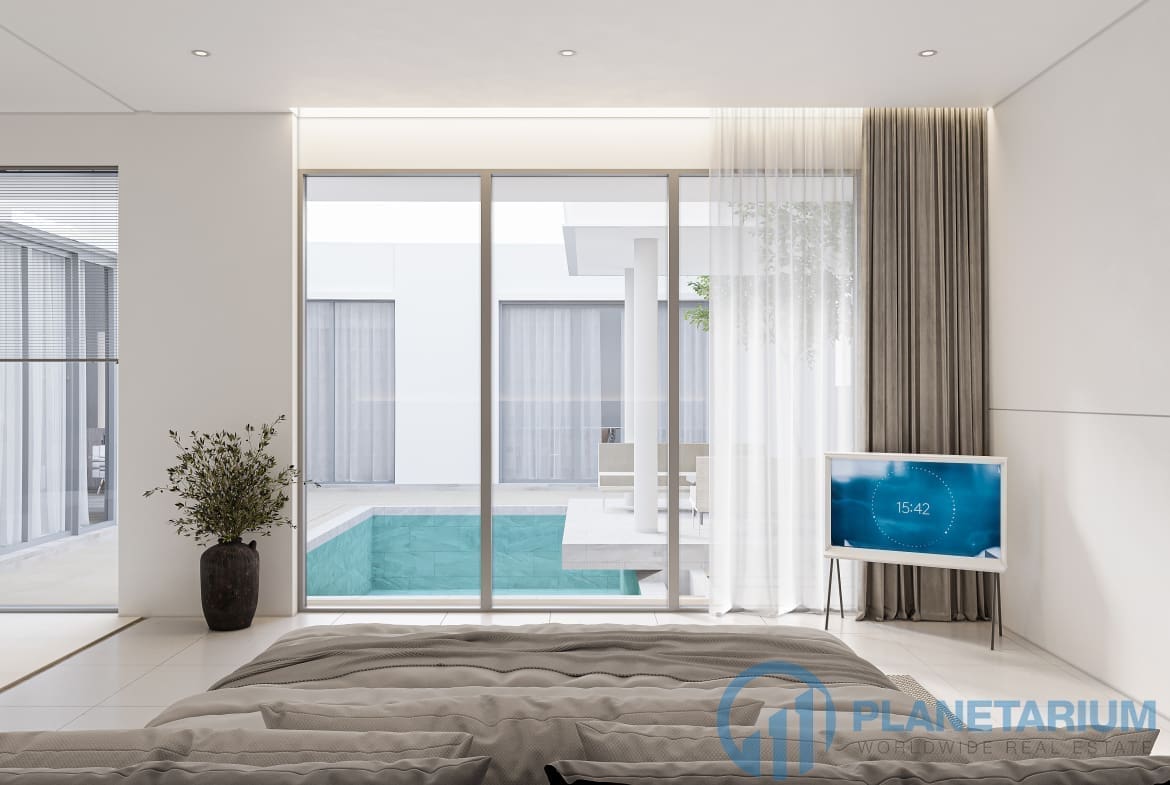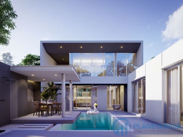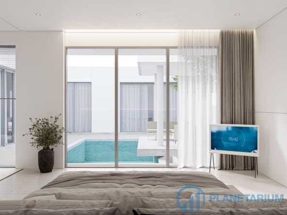 Luksusowa, minimalistyczna, dwupiętrowa willa z basenem. Każda willa zaprojektowana jest w kształcie litery U i otacza basen. W dwupiętrowym układzie z trzema sypialniami i jednym wielofunkcyjnym pokojem, który można przekształcić w czwartą sypialnię lub pokój pokojówki zgodnie z potrzebami właściciela.