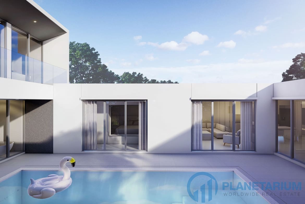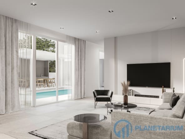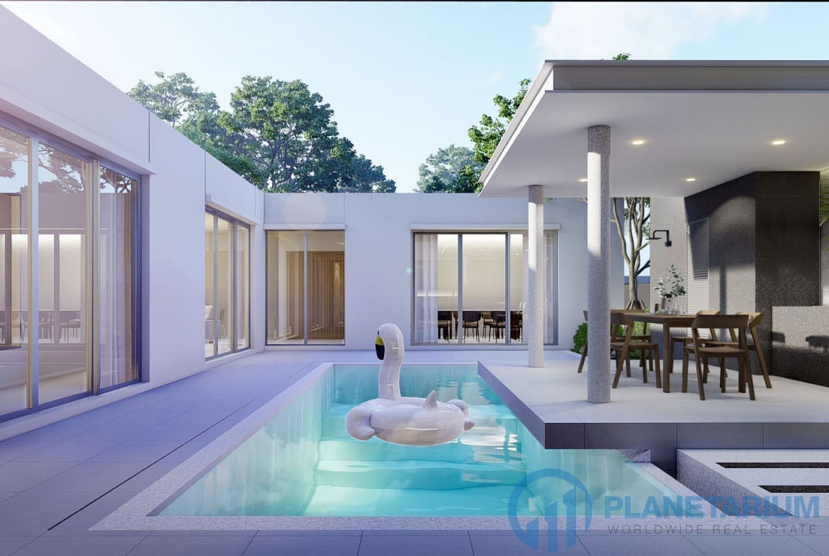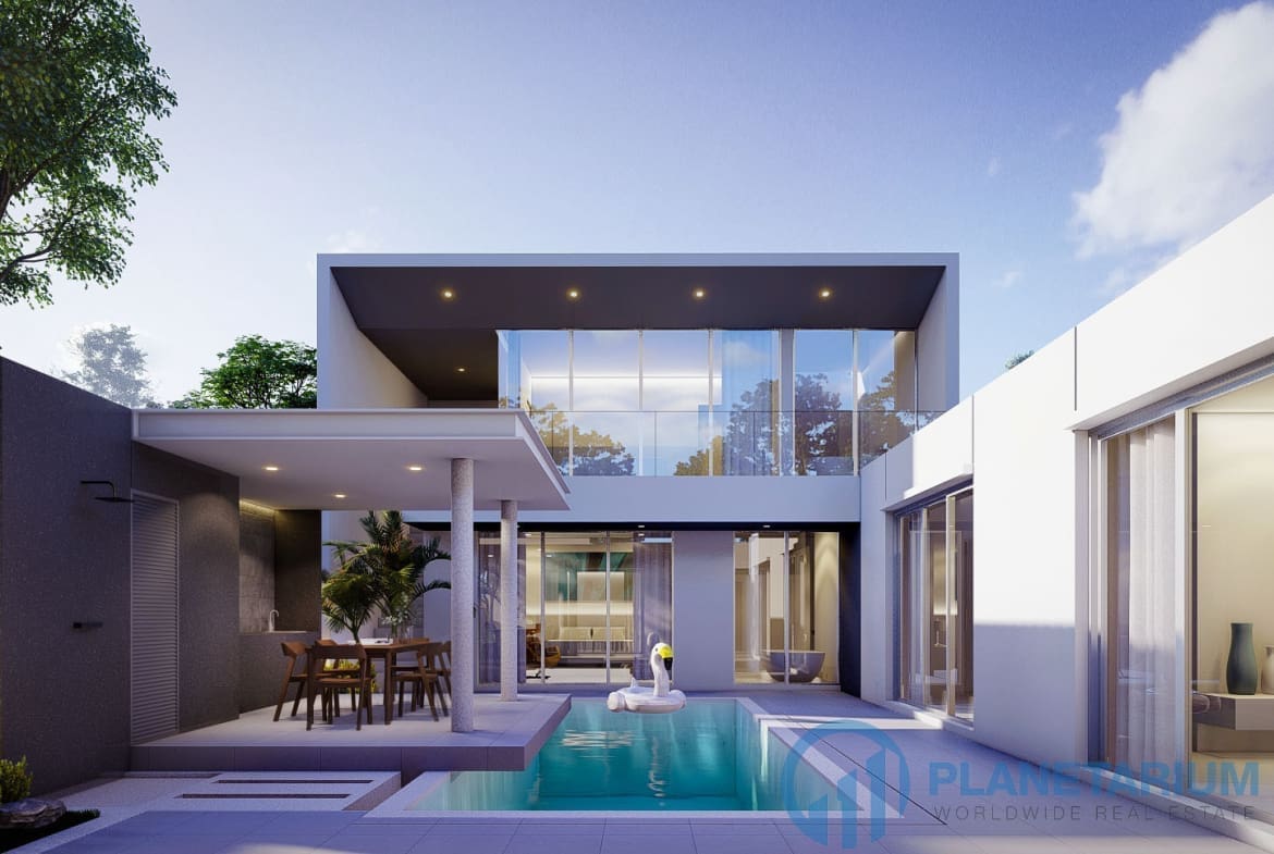Luksusowa, minimalistyczna, dwupiętrowa willa z basenem. Każda willa zaprojektowana jest w kształcie litery U i otacza basen. W dwupiętrowym układzie z trzema sypialniami i jednym wielofunkcyjnym pokojem, który można przekształcić w czwartą sypialnię lub pokój pokojówki zgodnie z potrzebami właściciela.