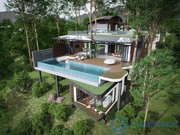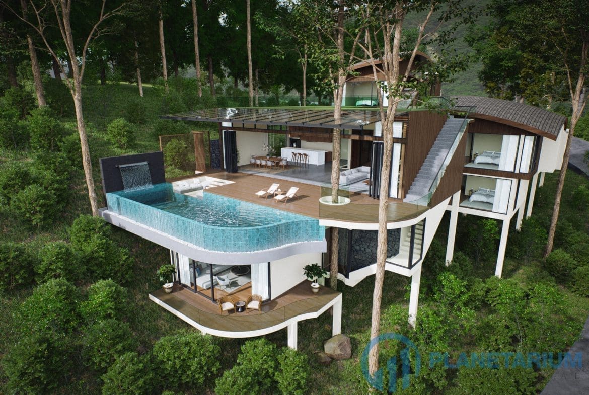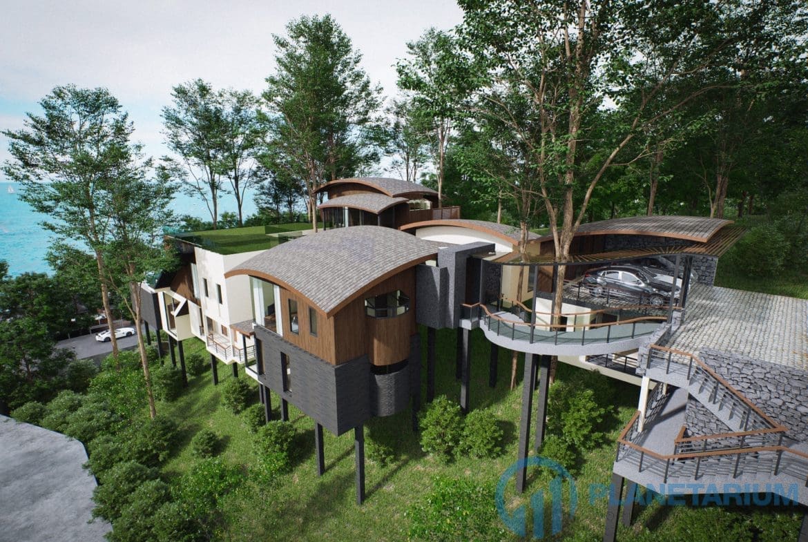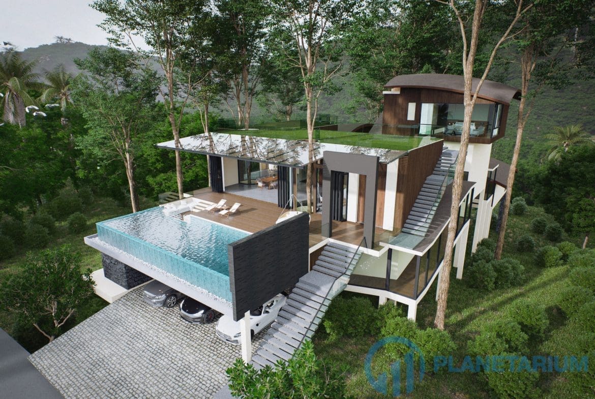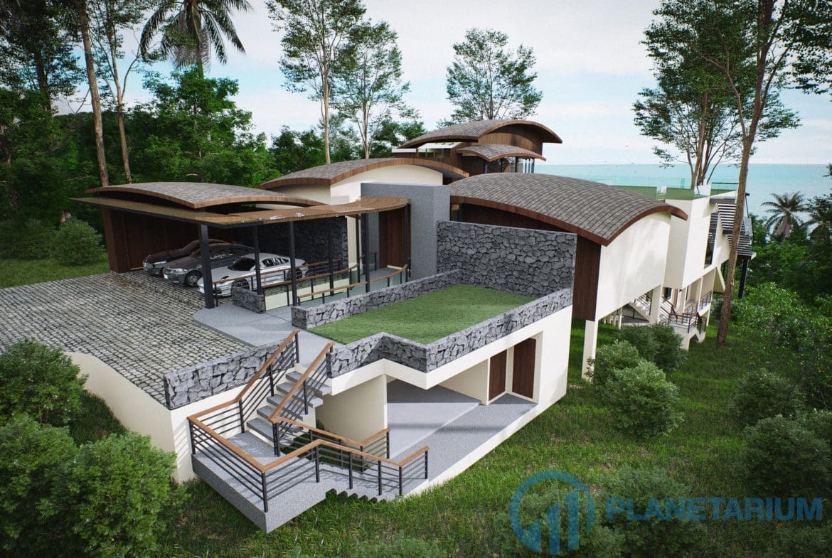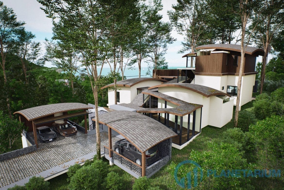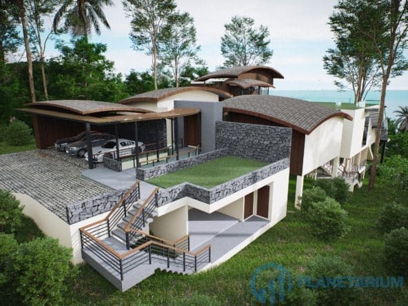 Nowa definicja nowoczesnej tropikalnej willi z basenem oceanicznym Powierzchnia 1,200 mkw ++ Powierzchnia użytkowa 1,013 mkw.++ 5 sypialni głównych z łazienkami (z garderobą i łazienką) ❖ Prywatny basen z zatopionym tarasem ❖ Taras słoneczny ❖ Część dzienna ❖ Prochownia ❖ Jadalnia ❖ Kuchnia ❖ Spiżarnia ❖ Pokój pokojówki ❖ Obszar M & E ❖Laundry Pokój i Pomieszczenie gospodarcze ❖3 miejsca parkingowe ❖System Smart Home ❖Klimatyzacja VRV ❖100% automatyczny generator ❖Podziemna instalacja elektryczna ❖Stacja ładowania pojazdów Nowoczesna architektura tropikalna czerpała inspirację z otaczającej przyrody i koncepcji zachowania istniejących drzew w projekcie. Dostosowanie konturu obszaru zostanie zminimalizowane w celu uniknięcia szkód, które mogą wystąpić w stanie gruntu. Każda willa została starannie zaprojektowana, aby móc cieszyć się widokiem na morze w każdej jednostce. Projekt architektoniczny łączy zbocze wzgórza z linią brzegową, reprezentując to, co najlepsze w obu krajobrazach i wtapiając się w krajobraz wzgórza z zakrzywionymi dachami. Nasze wille składają się z wielu dobrze zaprojektowanych budynków połączonych ze sobą w celu uniknięcia naruszania istniejących drzew i zapewnienia prywatności w każdym pokoju, ze szklanymi korytarzami ściennymi, aby uzyskać wrażenie tropikalnego lasu deszczowego z botanicznego życia na podwórku. Zwiedzaj i podziwiaj wschód słońca z różnych kątów willi. Naturalne lub sztuczne materiały są wybierane tak, aby mieszkańcy mogli się zrelaksować i zbliżyć do natury. System inteligentnego domu, system elektryczny i komunikacyjny w pełni zainstalowany, aby zapewnić nowoczesny styl życia. Stąd właśnie wzięła się nazwa “Modern Tropical”.