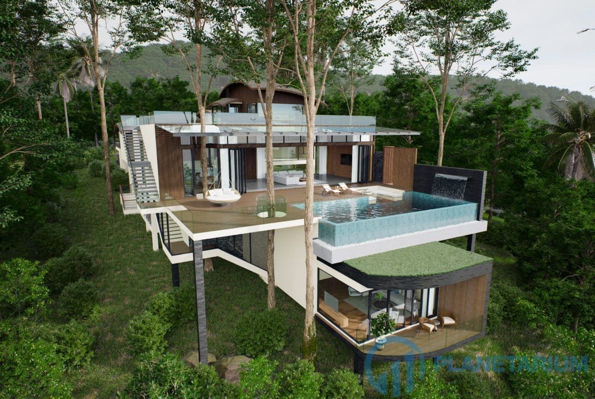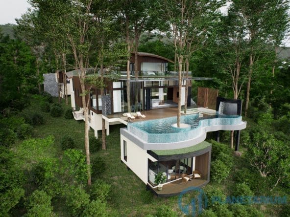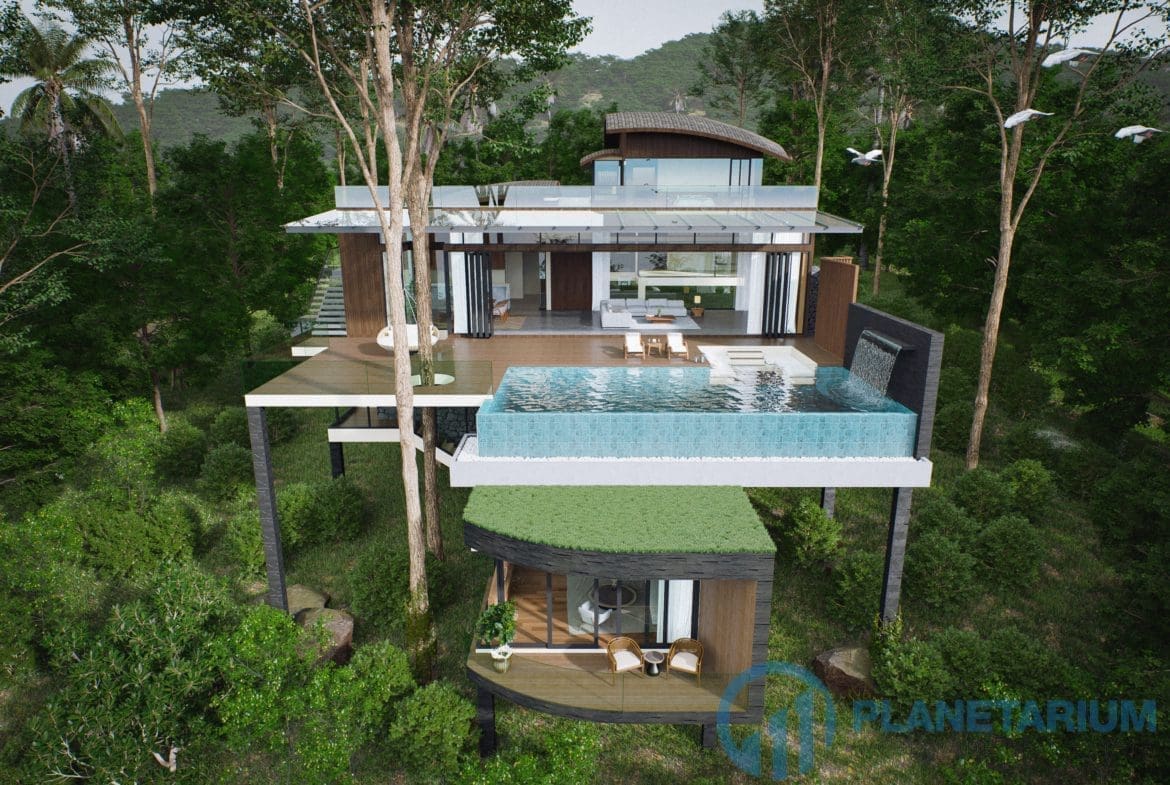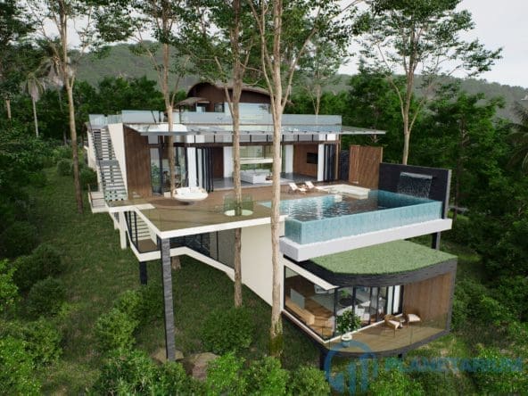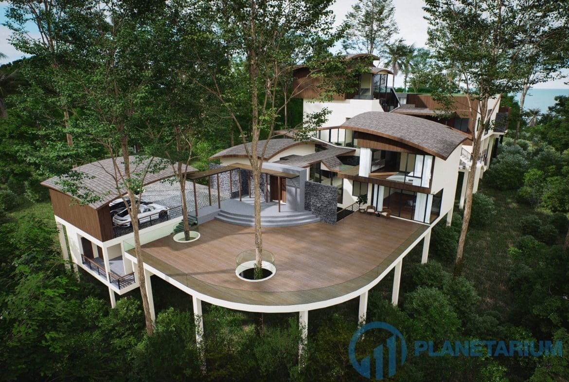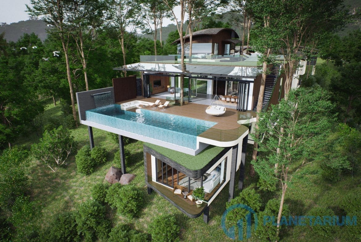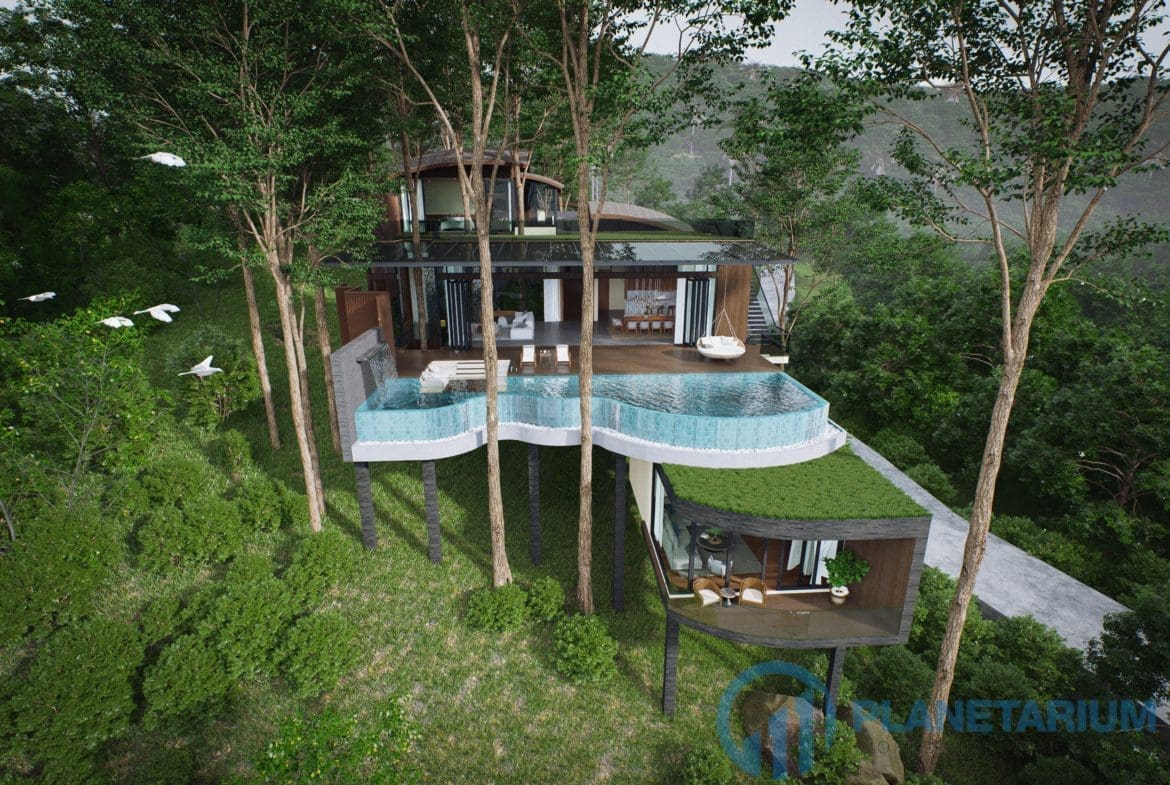 Nowa definicja nowoczesnej tropikalnej willi z basenem oceanicznym Powierzchnia 1,200 mkw ++ Powierzchnia użytkowa 1,013 mkw.++ 5 sypialni głównych z łazienkami (z garderobą i łazienką) ❖ Prywatny basen z zatopionym tarasem ❖ Taras słoneczny ❖ Część dzienna ❖ Prochownia ❖ Jadalnia ❖ Kuchnia ❖ Spiżarnia ❖ Pokój pokojówki ❖ Obszar M & E ❖Laundry Pokój i Pomieszczenie gospodarcze ❖3 miejsca parkingowe ❖System Smart Home ❖Klimatyzacja VRV ❖100% automatyczny generator ❖Podziemna instalacja elektryczna ❖Stacja ładowania pojazdów Nowoczesna architektura tropikalna czerpała inspirację z otaczającej przyrody i koncepcji zachowania istniejących drzew w projekcie. Dostosowanie konturu obszaru zostanie zminimalizowane w celu uniknięcia szkód, które mogą wystąpić w stanie gruntu. Każda willa została starannie zaprojektowana, aby móc cieszyć się widokiem na morze w każdej jednostce. Projekt architektoniczny łączy zbocze wzgórza z linią brzegową, reprezentując to, co najlepsze w obu krajobrazach i wtapiając się w krajobraz wzgórza z zakrzywionymi dachami. Nasze wille składają się z wielu dobrze zaprojektowanych budynków połączonych ze sobą w celu uniknięcia naruszania istniejących drzew i zapewnienia prywatności w każdym pokoju, ze szklanymi korytarzami ściennymi, aby uzyskać wrażenie tropikalnego lasu deszczowego z botanicznego życia na podwórku. Zwiedzaj i podziwiaj wschód słońca z różnych kątów willi. Naturalne lub sztuczne materiały są wybierane tak, aby mieszkańcy mogli się zrelaksować i zbliżyć do natury. System inteligentnego domu, system elektryczny i komunikacyjny w pełni zainstalowany, aby zapewnić nowoczesny styl życia. Stąd właśnie wzięła się nazwa “Modern Tropical”.