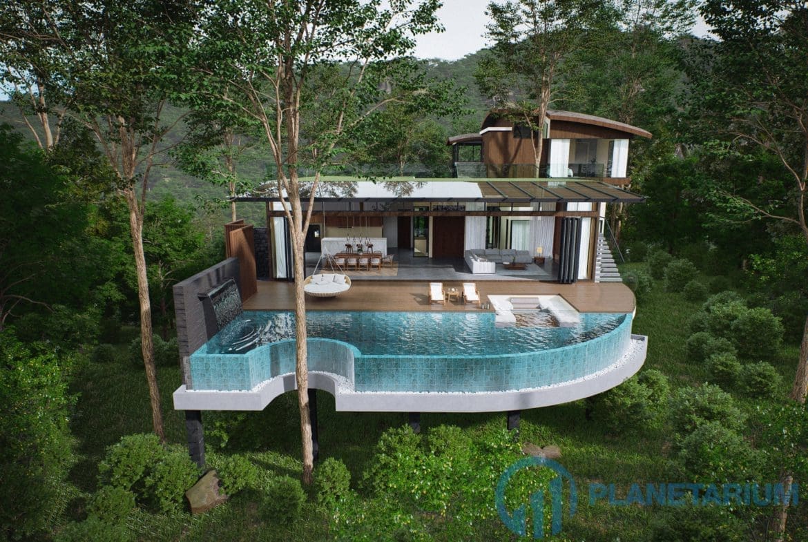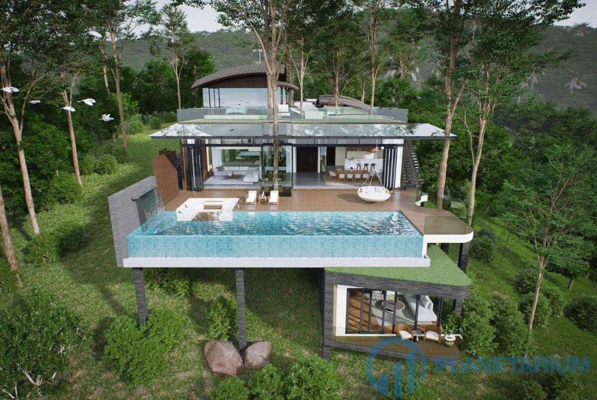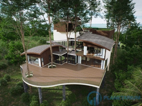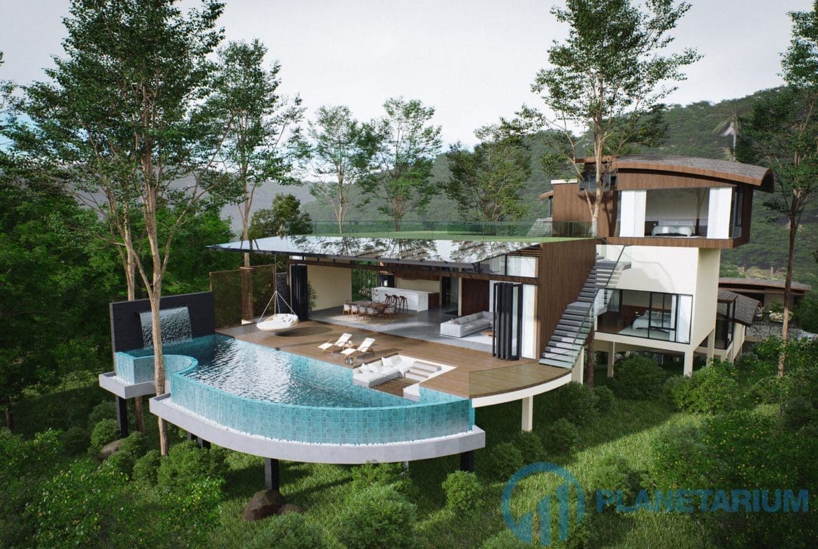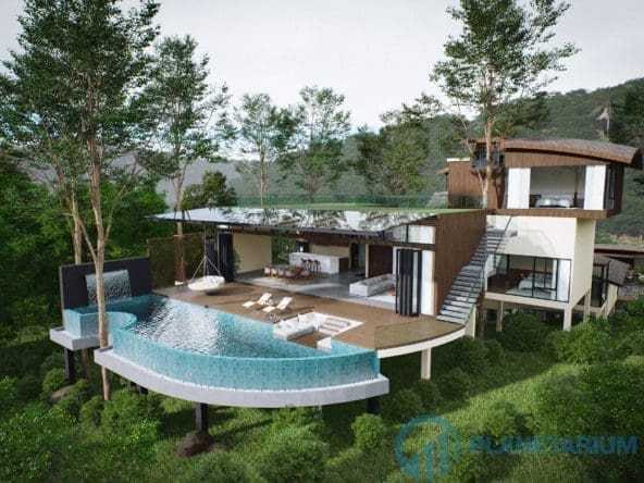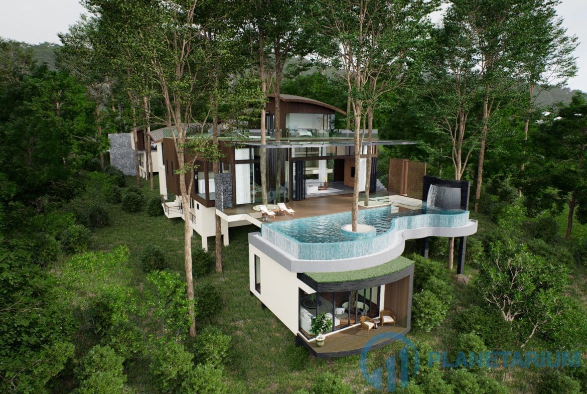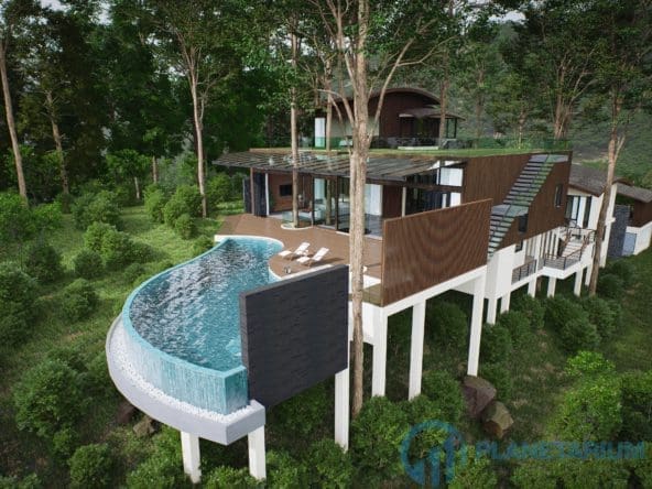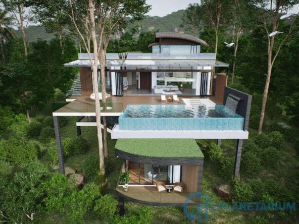 Nowa definicja nowoczesnej tropikalnej willi z basenem oceanicznym Powierzchnia 1,200 mkw ++ Powierzchnia użytkowa 1,013 mkw.++ 5 sypialni głównych z łazienkami (z garderobą i łazienką) ❖ Prywatny basen z zatopionym tarasem ❖ Taras słoneczny ❖ Część dzienna ❖ Prochownia ❖ Jadalnia ❖ Kuchnia ❖ Spiżarnia ❖ Pokój pokojówki ❖ Obszar M & E ❖Laundry Pokój i Pomieszczenie gospodarcze ❖3 miejsca parkingowe ❖System Smart Home ❖Klimatyzacja VRV ❖100% automatyczny generator ❖Podziemna instalacja elektryczna ❖Stacja ładowania pojazdów Nowoczesna architektura tropikalna czerpała inspirację z otaczającej przyrody i koncepcji zachowania istniejących drzew w projekcie. Dostosowanie konturu obszaru zostanie zminimalizowane w celu uniknięcia szkód, które mogą wystąpić w stanie gruntu. Każda willa została starannie zaprojektowana, aby móc cieszyć się widokiem na morze w każdej jednostce. Projekt architektoniczny łączy zbocze wzgórza z linią brzegową, reprezentując to, co najlepsze w obu krajobrazach i wtapiając się w krajobraz wzgórza z zakrzywionymi dachami. Nasze wille składają się z wielu dobrze zaprojektowanych budynków połączonych ze sobą w celu uniknięcia naruszania istniejących drzew i zapewnienia prywatności w każdym pokoju, ze szklanymi korytarzami ściennymi, aby uzyskać wrażenie tropikalnego lasu deszczowego z botanicznego życia na podwórku. Zwiedzaj i podziwiaj wschód słońca z różnych kątów willi. Naturalne lub sztuczne materiały są wybierane tak, aby mieszkańcy mogli się zrelaksować i zbliżyć do natury. System inteligentnego domu, system elektryczny i komunikacyjny w pełni zainstalowany, aby zapewnić nowoczesny styl życia. Stąd właśnie wzięła się nazwa “Modern Tropical”.