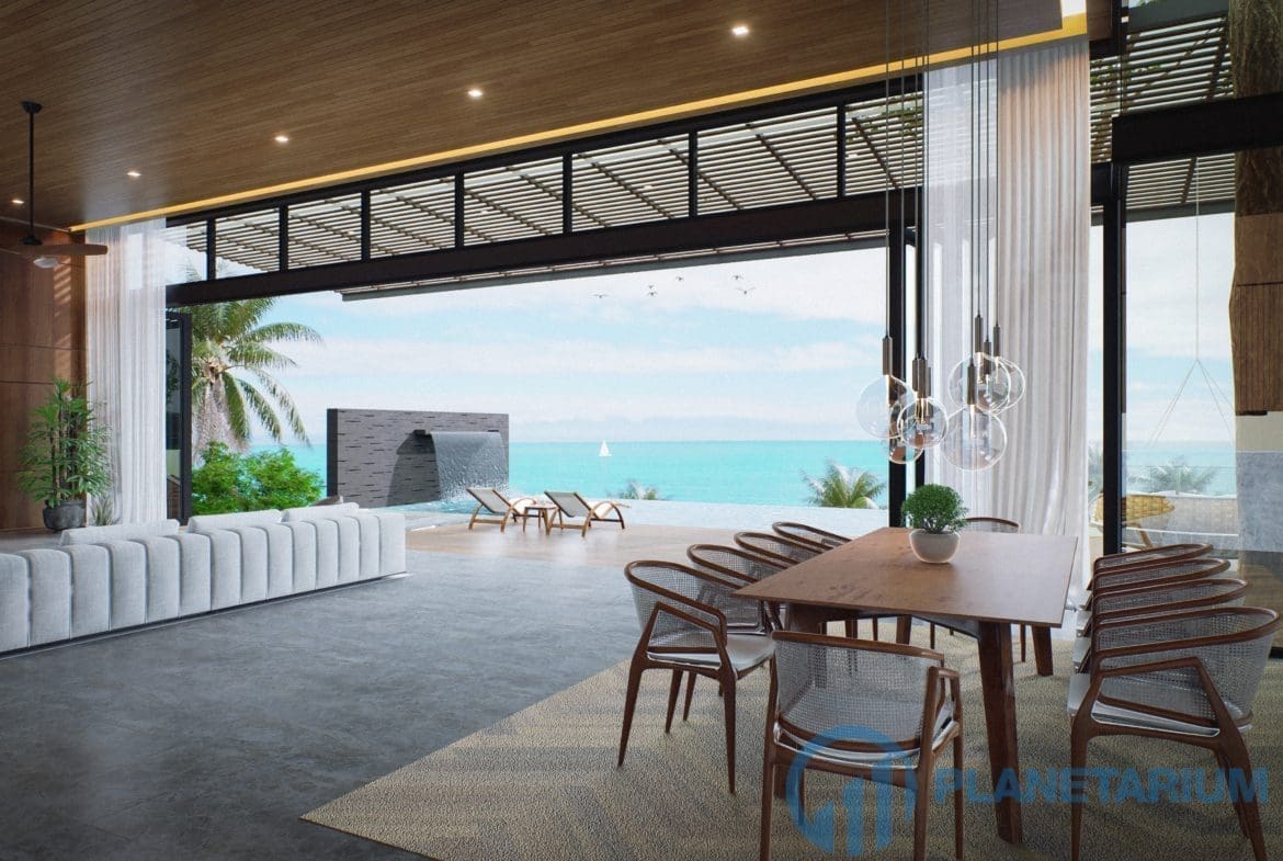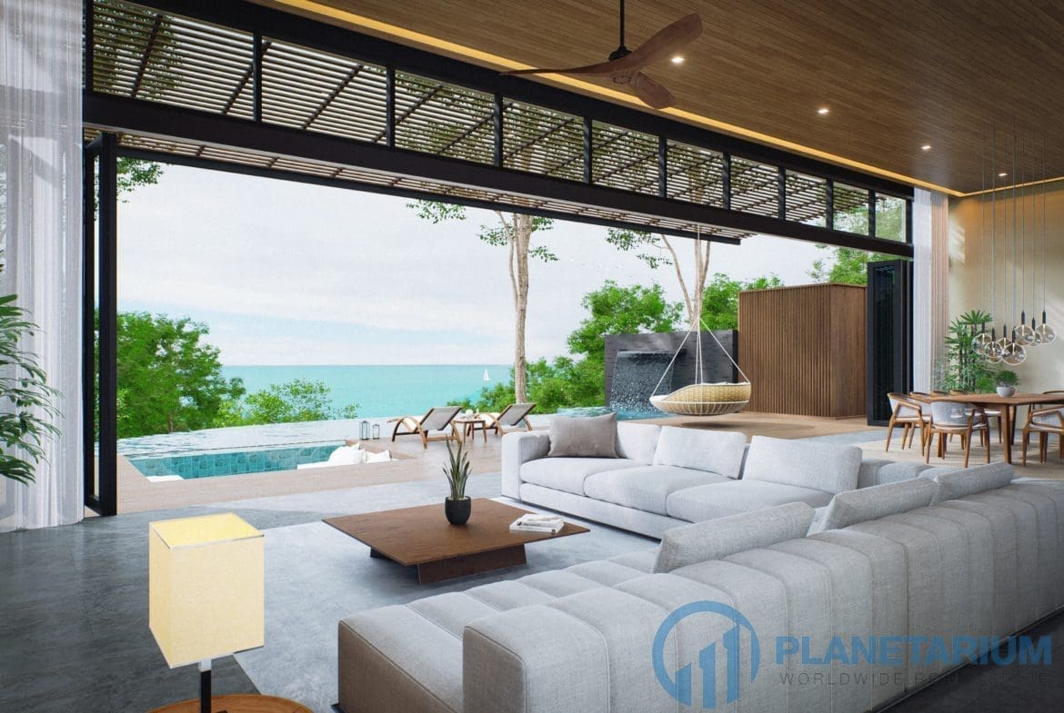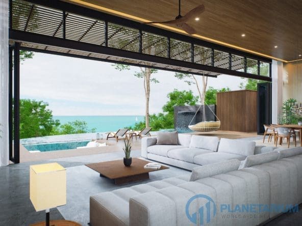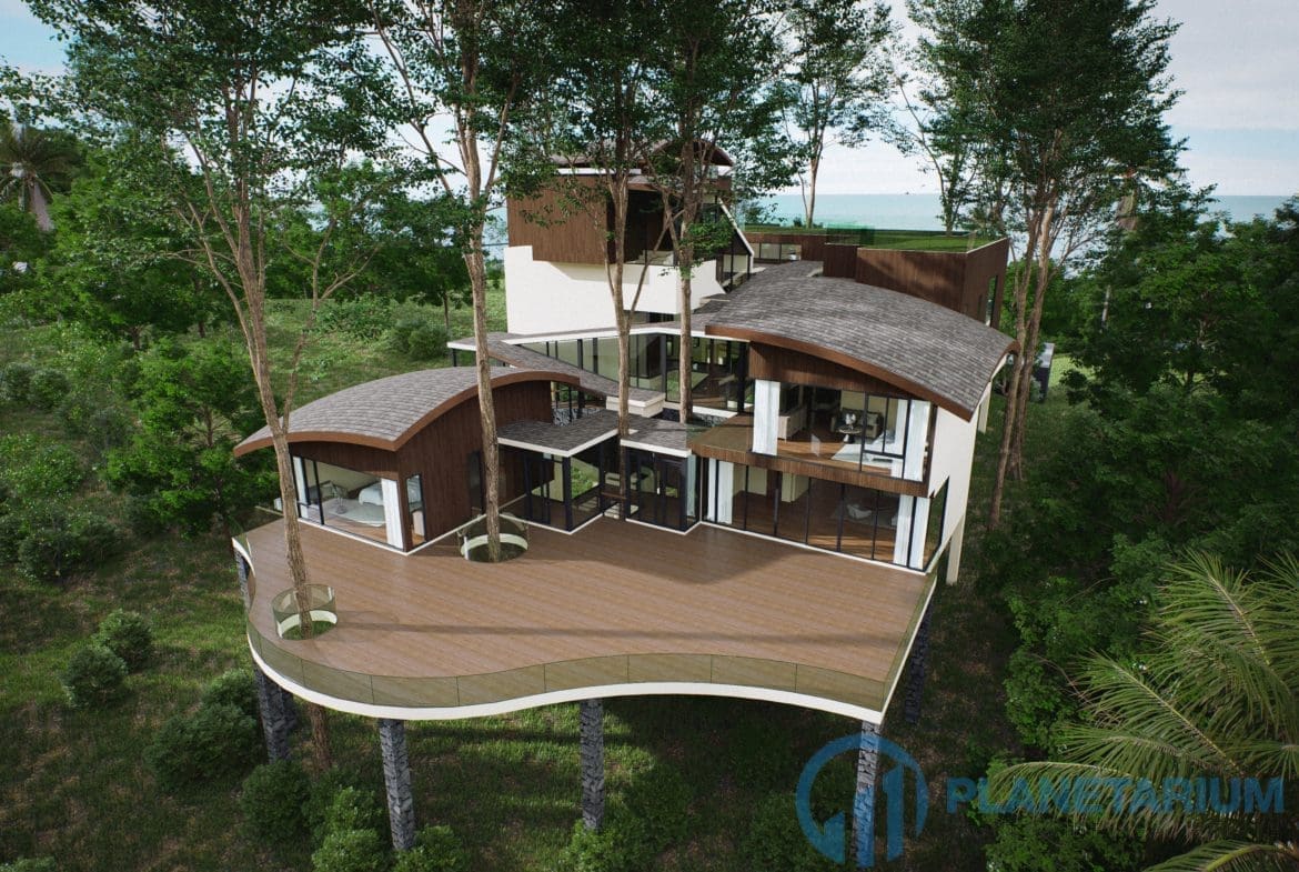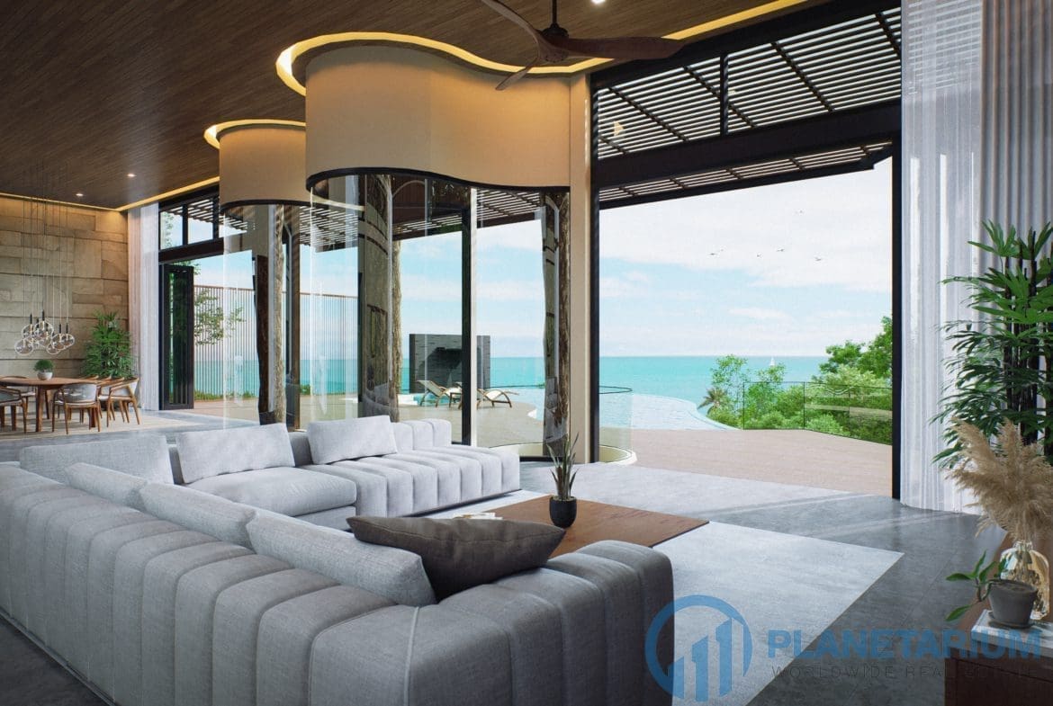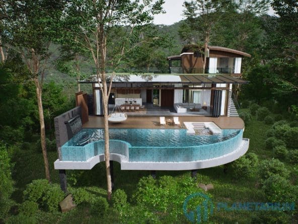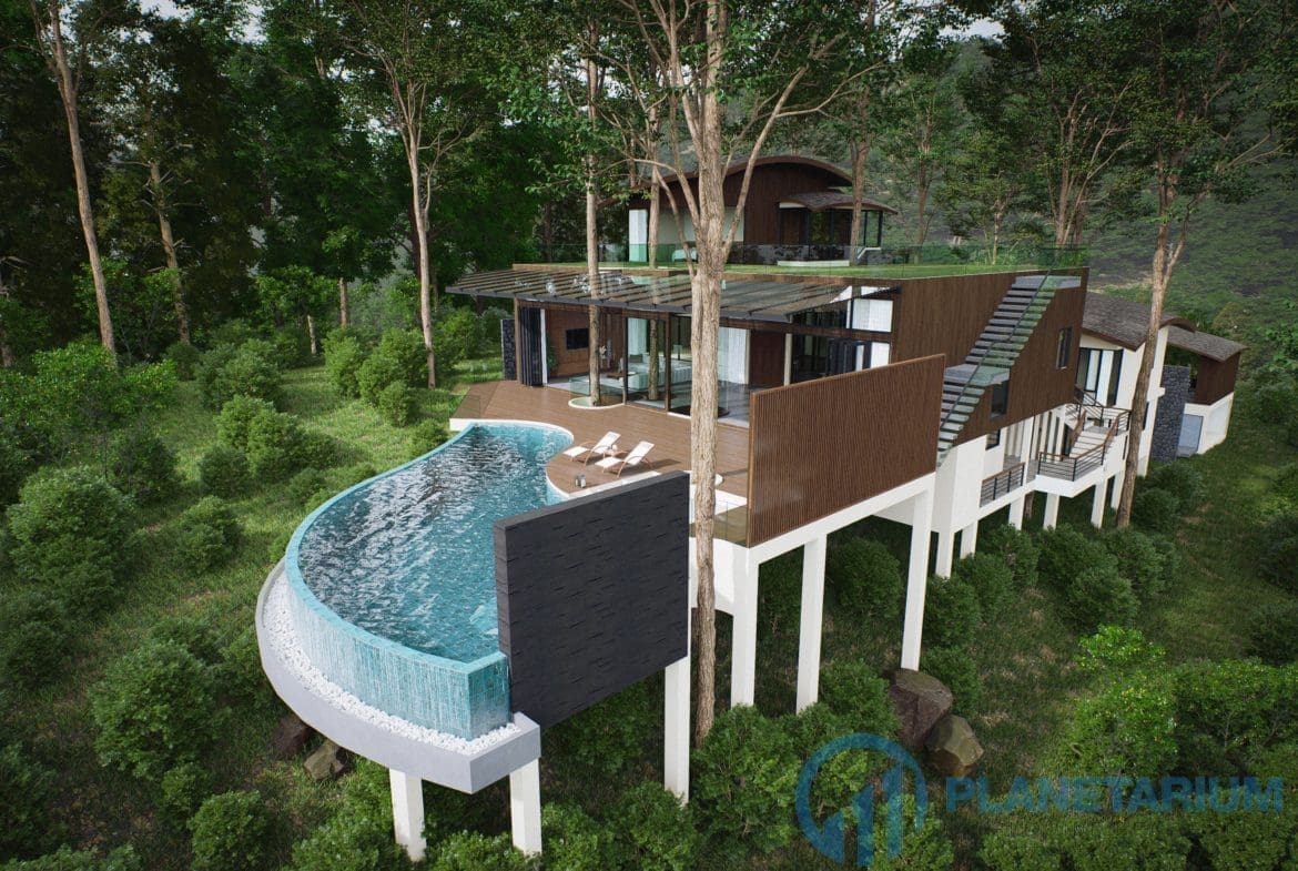 Nowa definicja nowoczesnej tropikalnej willi z basenem oceanicznym Powierzchnia 1,200 mkw ++ Powierzchnia użytkowa 1,013 mkw.++ 5 sypialni głównych z łazienkami (z garderobą i łazienką) ❖ Prywatny basen z zatopionym tarasem ❖ Taras słoneczny ❖ Część dzienna ❖ Prochownia ❖ Jadalnia ❖ Kuchnia ❖ Spiżarnia ❖ Pokój pokojówki ❖ Obszar M & E ❖Laundry Pokój i Pomieszczenie gospodarcze ❖3 miejsca parkingowe ❖System Smart Home ❖Klimatyzacja VRV ❖100% automatyczny generator ❖Podziemna instalacja elektryczna ❖Stacja ładowania pojazdów Nowoczesna architektura tropikalna czerpała inspirację z otaczającej przyrody i koncepcji zachowania istniejących drzew w projekcie. Dostosowanie konturu obszaru zostanie zminimalizowane w celu uniknięcia szkód, które mogą wystąpić w stanie gruntu. Każda willa została starannie zaprojektowana, aby móc cieszyć się widokiem na morze w każdej jednostce. Projekt architektoniczny łączy zbocze wzgórza z linią brzegową, reprezentując to, co najlepsze w obu krajobrazach i wtapiając się w krajobraz wzgórza z zakrzywionymi dachami. Nasze wille składają się z wielu dobrze zaprojektowanych budynków połączonych ze sobą w celu uniknięcia naruszania istniejących drzew i zapewnienia prywatności w każdym pokoju, ze szklanymi korytarzami ściennymi, aby uzyskać wrażenie tropikalnego lasu deszczowego z botanicznego życia na podwórku. Zwiedzaj i podziwiaj wschód słońca z różnych kątów willi. Naturalne lub sztuczne materiały są wybierane tak, aby mieszkańcy mogli się zrelaksować i zbliżyć do natury. System inteligentnego domu, system elektryczny i komunikacyjny w pełni zainstalowany, aby zapewnić nowoczesny styl życia. Stąd właśnie wzięła się nazwa “Modern Tropical”.