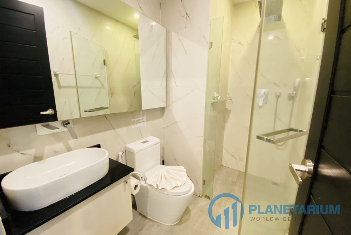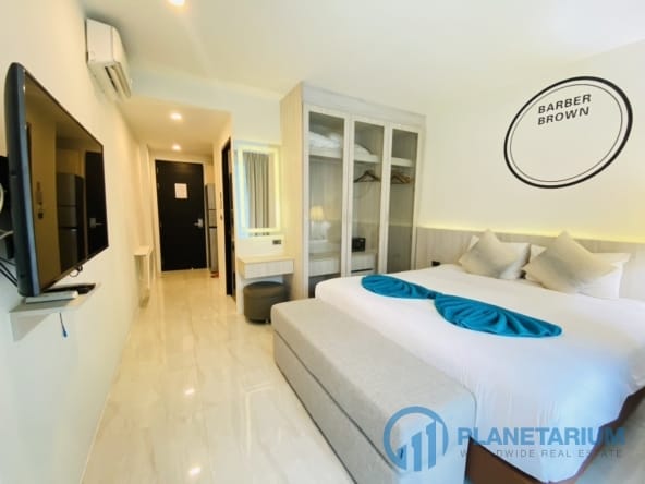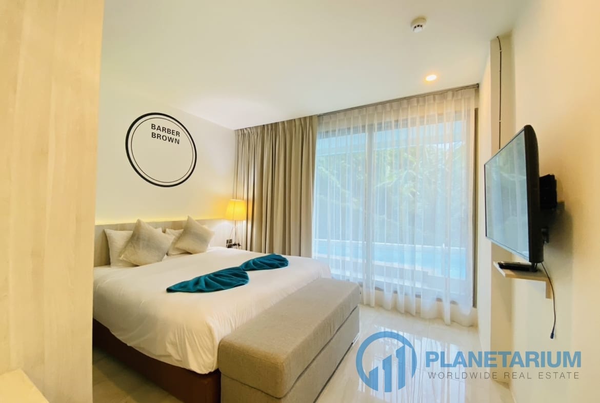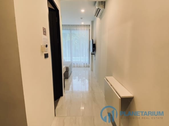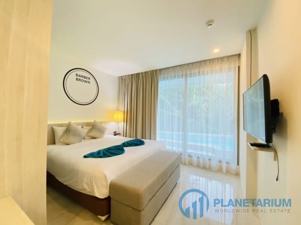 To przytulne mieszkanie w Kamala znajduje się w malowniczej lokalizacji na zboczu wzgórza, zaledwie krótki spacer od malowniczej plaży Kamala i pobliskich udogodnień. Wnętrze charakteryzuje się świeżym i jasnym designem z białymi tonami i dużymi szklanymi oknami, wypełniając przestrzeń naturalnym światłem. Mieszkanie posiada otwartą strefę dzienną i jadalnię, funkcjonalny aneks kuchenny, nowoczesną łazienkę i wygodną sypialnię.