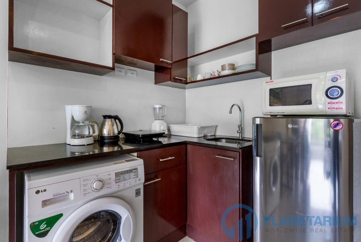 Przestronny apartament w słynnym Condo Karon położony zaledwie 800 metrów od najlepszej plaży w Phuket. Apartament w pełni umeblowany i gotowy do przeprowadzki. Minutę spacerem od mieszkania znajduje się najbardziej tętniąca życiem część Karon Beach z wieloma sklepami i obiektami rozrywkowymi, jednak sam budynek znajduje się na wzgórzu, a okna apartamentu znajdują się po przeciwnej stronie, więc zawsze jest tu cicho i przytulnie. W odległości 5 minut jazdy samochodem znajduje się supermarket Makro, w którym sprzedawane są produkty znane mieszkańcom Europy. W pokoju: -45 m2 powierzchni -w pełni wyposażona kuchnia -4 piętro z widokiem na góry -duży balkon z meblami -pralka -żelazko/deska do prasowania -suszarka do włosów -stół jadalny -duże podwójne łóżko -wygodna sofa W mieszkaniu: -parking -basen -siłownia Dojazd : -100 metrów do nocnego targu (działa tylko 2 razy w tygodniu) -10 minut spacerem do plaży Karon -1 minut spacerem do restauracji, barów i salonów masażu -5 minut jazdy do sklepu spożywczego Makro