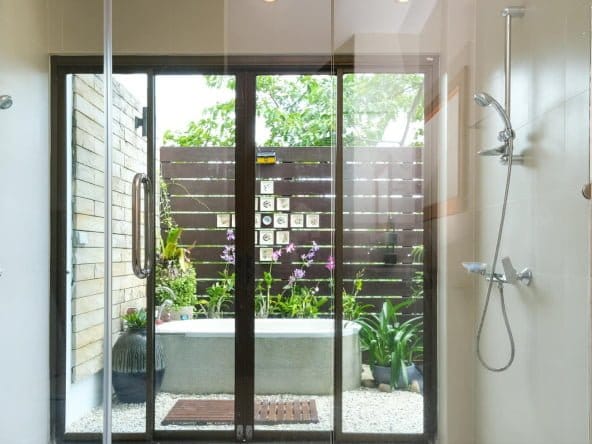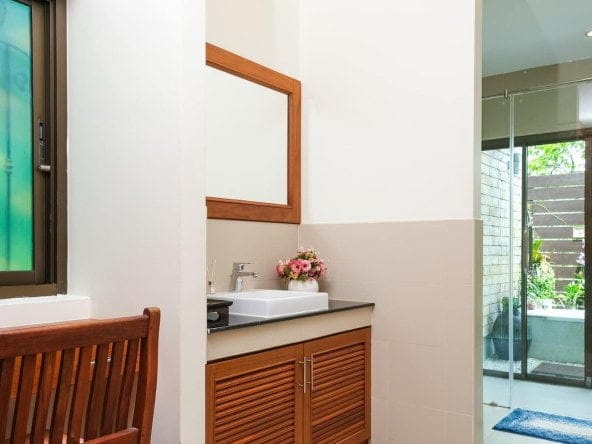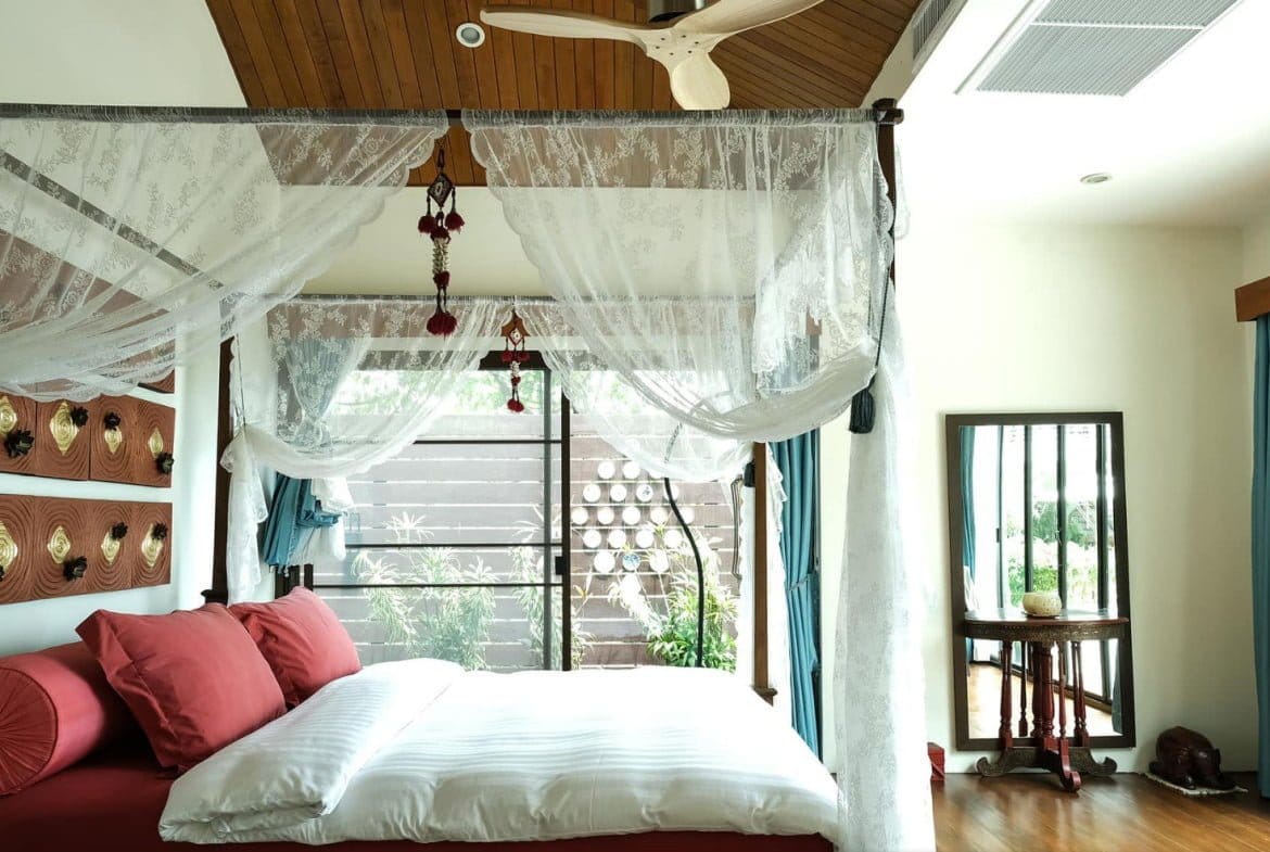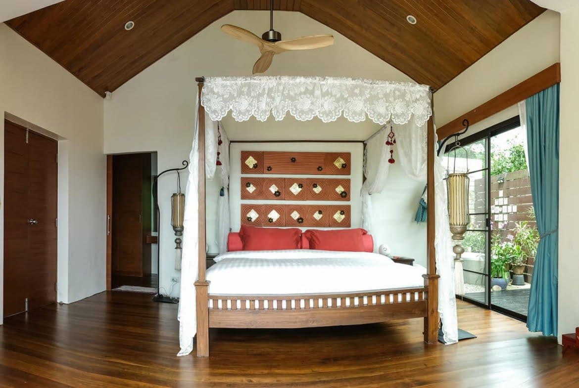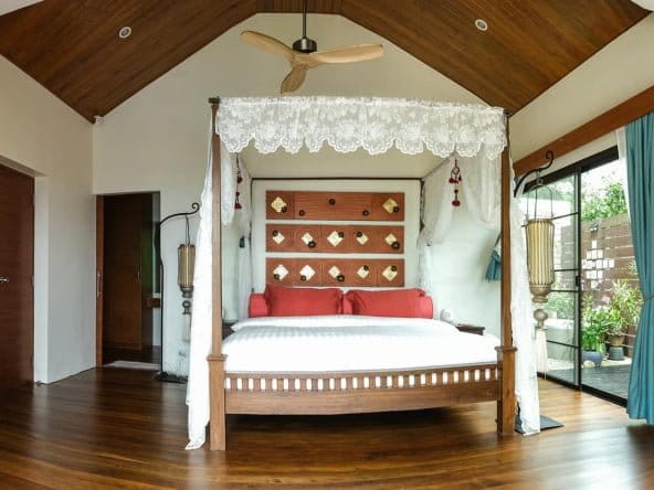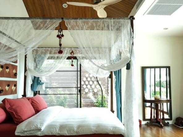 3 sypialnie; każdy pokój z łazienką, drewnianym parkietem, wentylatorem sufitowym i klimatyzacją