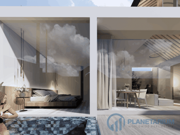 Każda willa prezentuje nowoczesną architekturę z współczesną estetyką, która podkreśla przestronność i naturalne światło.