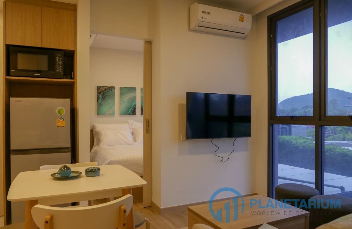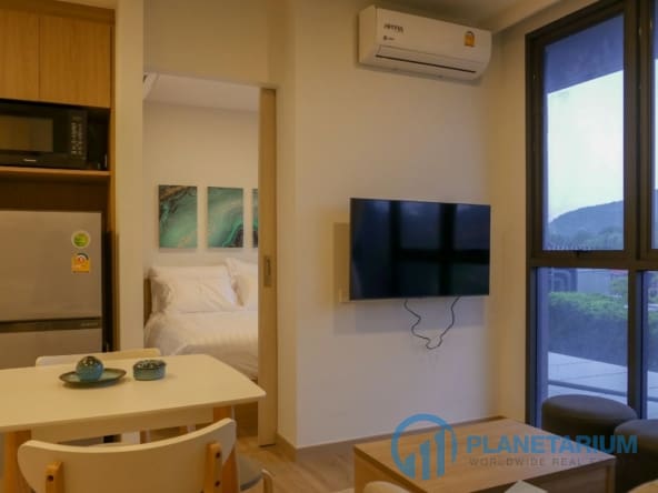 This 2-bedroom condo, with a usable area of 46 sqm, is part of the Sky Park project located in Choeng Thale, Phuket. The construction is planned to be completed in January 2025.