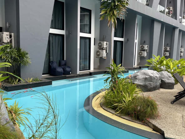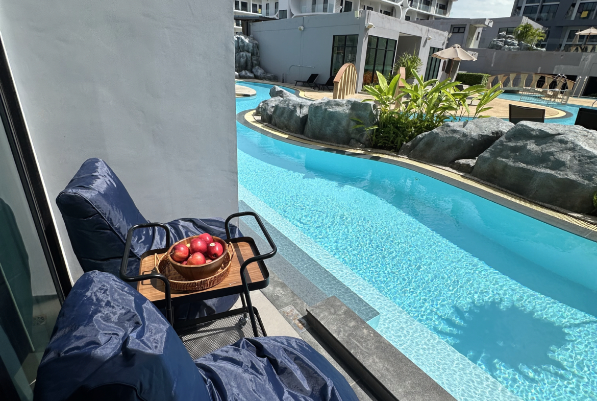 This stylish unit features an <b>author’s interior design</b> and <b>direct access to the swimming pool</b>, making it a perfect retreat or long-stay home.