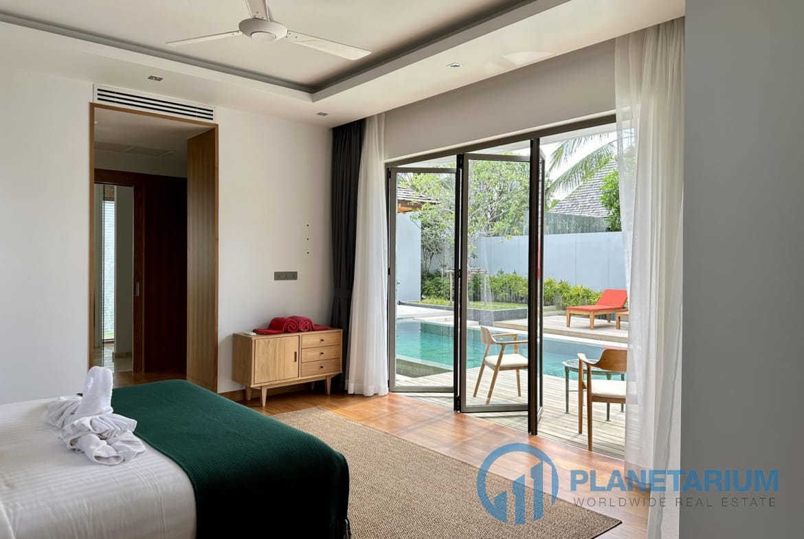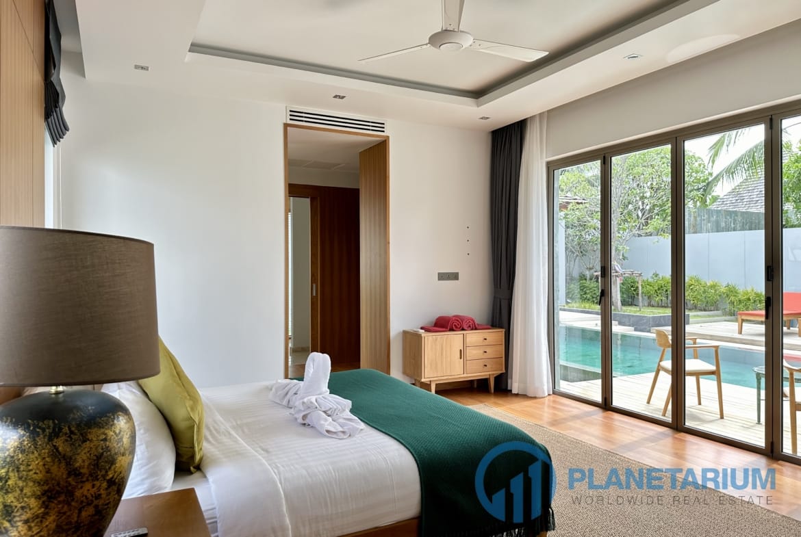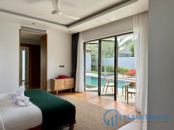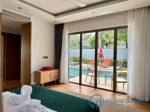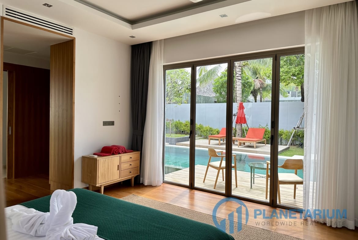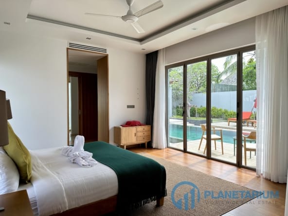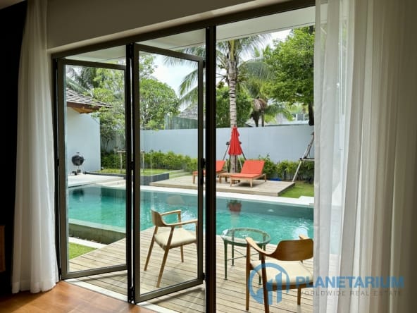 🪟 Long glass windows provide natural light and a serene pool view from 10 meters away