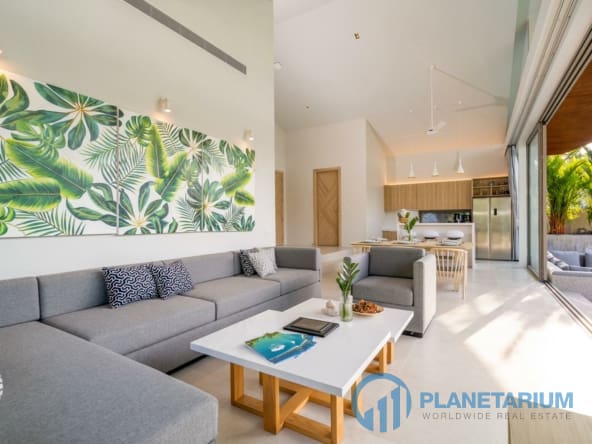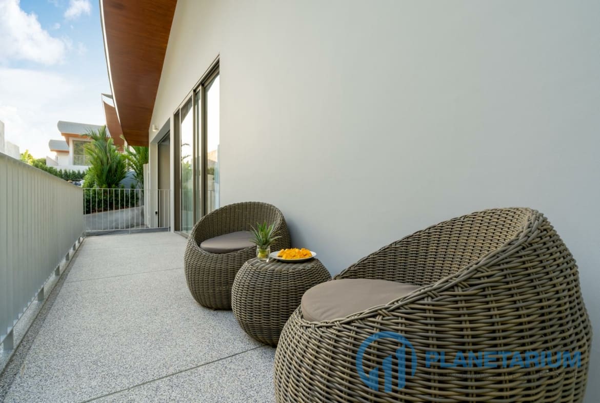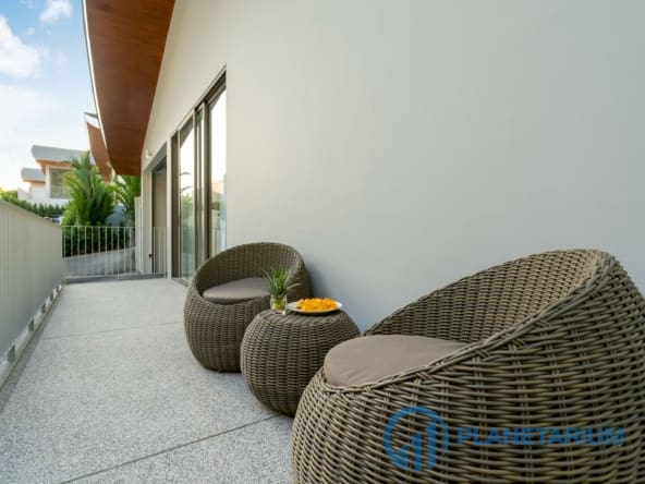 Welcome to our exquisite 3-bedroom villa located in the Muslim part of Kamala, Phuket. This two-story villa boasts its own private pool and features a modern tropical style characterized by white cream colors and light wooden accents, perfectly suited to the tropical environment and climate of Phuket.