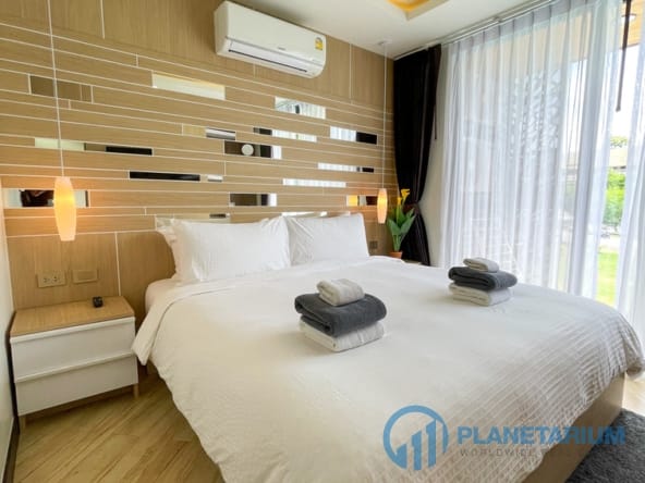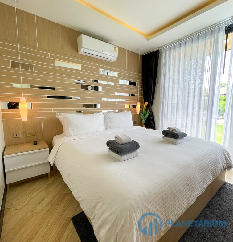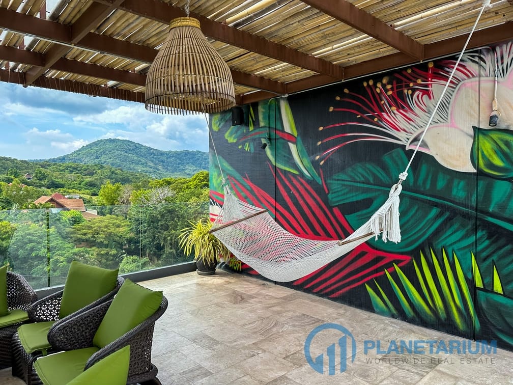 The interior features bright colors and natural wooden accents, creating a warm, harmonious atmosphere. Enjoy stunning mountain and sea views right from your private balcony, while being just 4 minutes from Rawai Beach and Nai Harn Beach — two of Phuket’s most popular destinations.