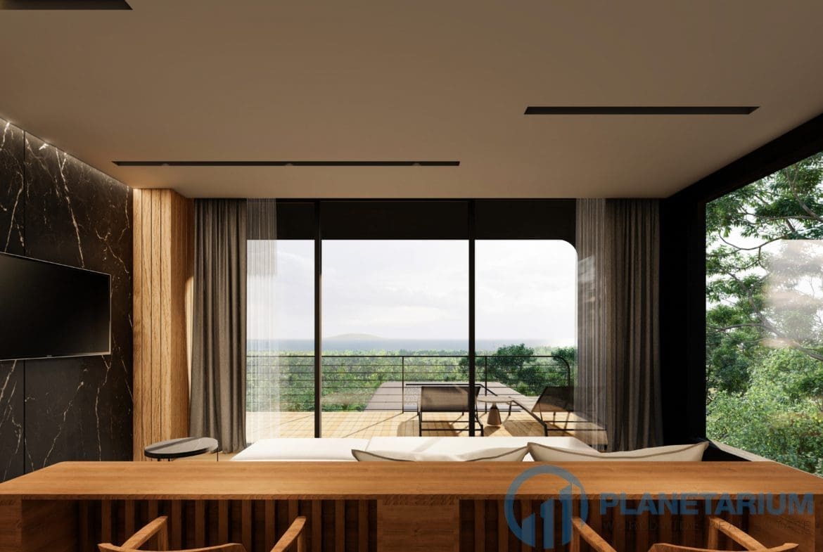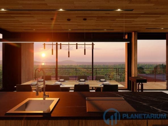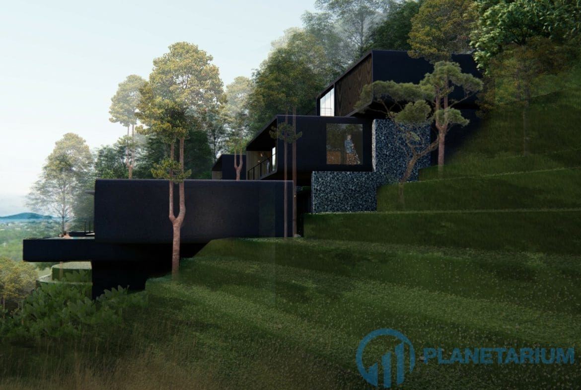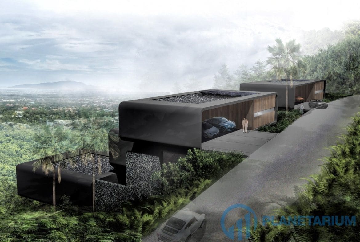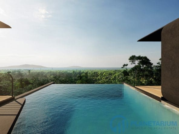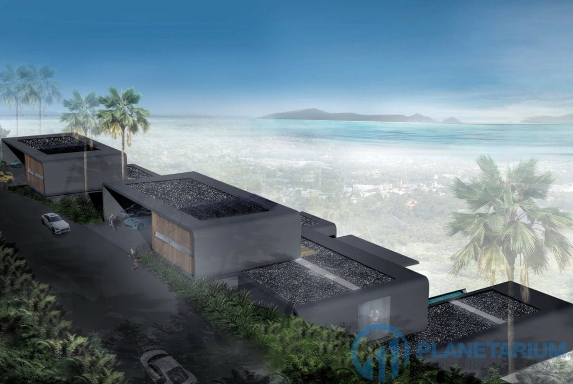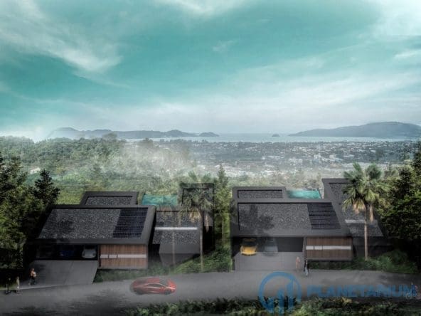 This luxury villa is located on a hilltop, overlooking Chalong Bay. On one side, the property looks out into the waters of the Andaman sea; on the other side, it borders with forest a and mountain. The villas feature a modern contemporary design that complements the green hillside surroundings. It is set in a prime location; adjacent to popular landmarks, supermarkets, and restaurants, also this villa only is 38 kilometers away from the airport This modern contemporary villa sits on 814 square meters of land, blessed with stunning views of the sea and sunset. The villa has three separate pavilions, all looking out to the sparkling sea. Each pavilion features a 3-meter-high ceiling, giving the villa a more sophisticated look while also creating a more airy and relaxing ambiance. At the villa, it is totally tranquil and private