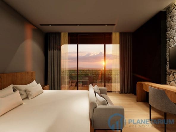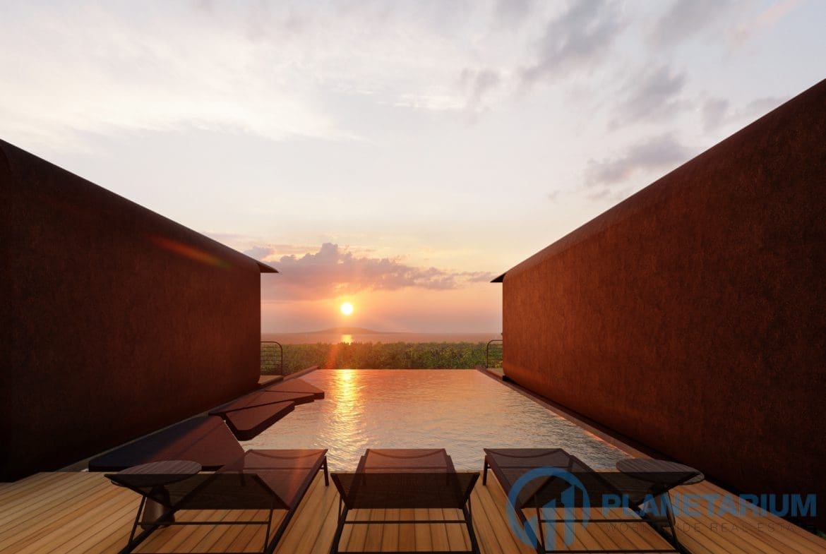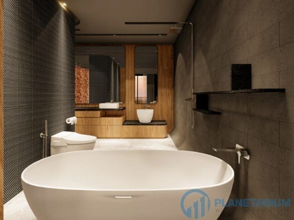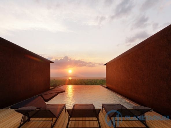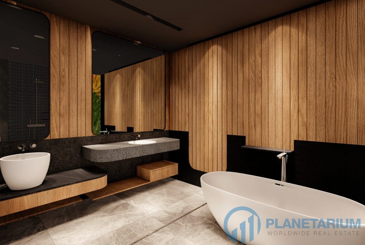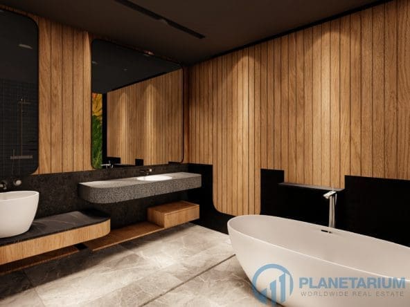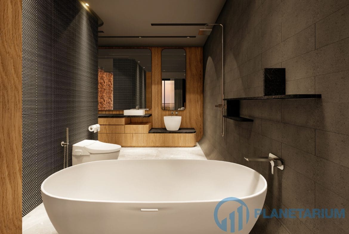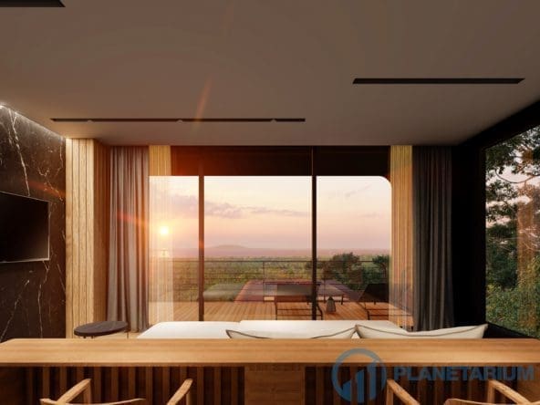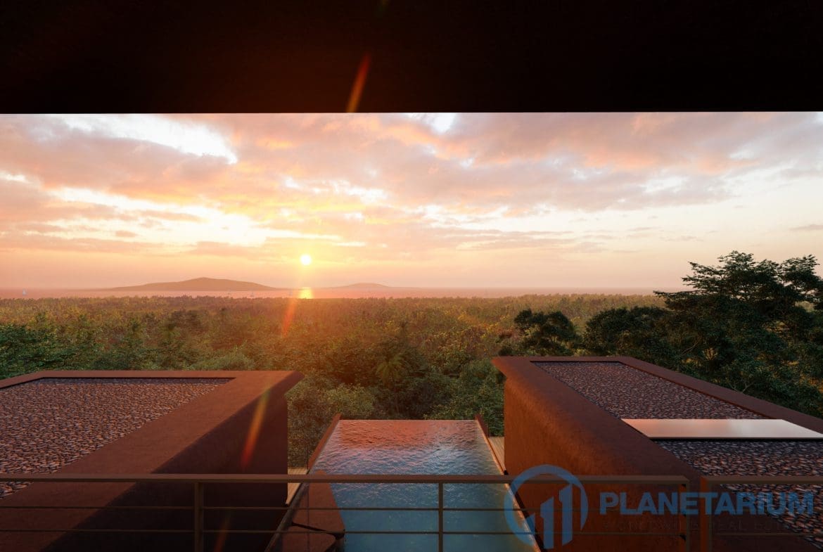 This luxury villa is located on a hilltop, overlooking Chalong Bay. On one side, the property looks out into the waters of the Andaman sea; on the other side, it borders with forest a and mountain. The villas feature a modern contemporary design that complements the green hillside surroundings. It is set in a prime location; adjacent to popular landmarks, supermarkets, and restaurants, also this villa only is 38 kilometers away from the airport This modern contemporary villa sits on 814 square meters of land, blessed with stunning views of the sea and sunset. The villa has three separate pavilions, all looking out to the sparkling sea. Each pavilion features a 3-meter-high ceiling, giving the villa a more sophisticated look while also creating a more airy and relaxing ambiance. At the villa, it is totally tranquil and private