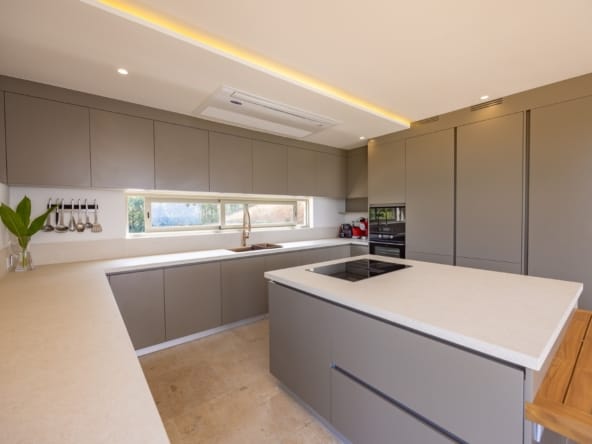 - European Kitchen: Equipped with a stylish European-style kitchen, complete with a center island/breakfast bar.